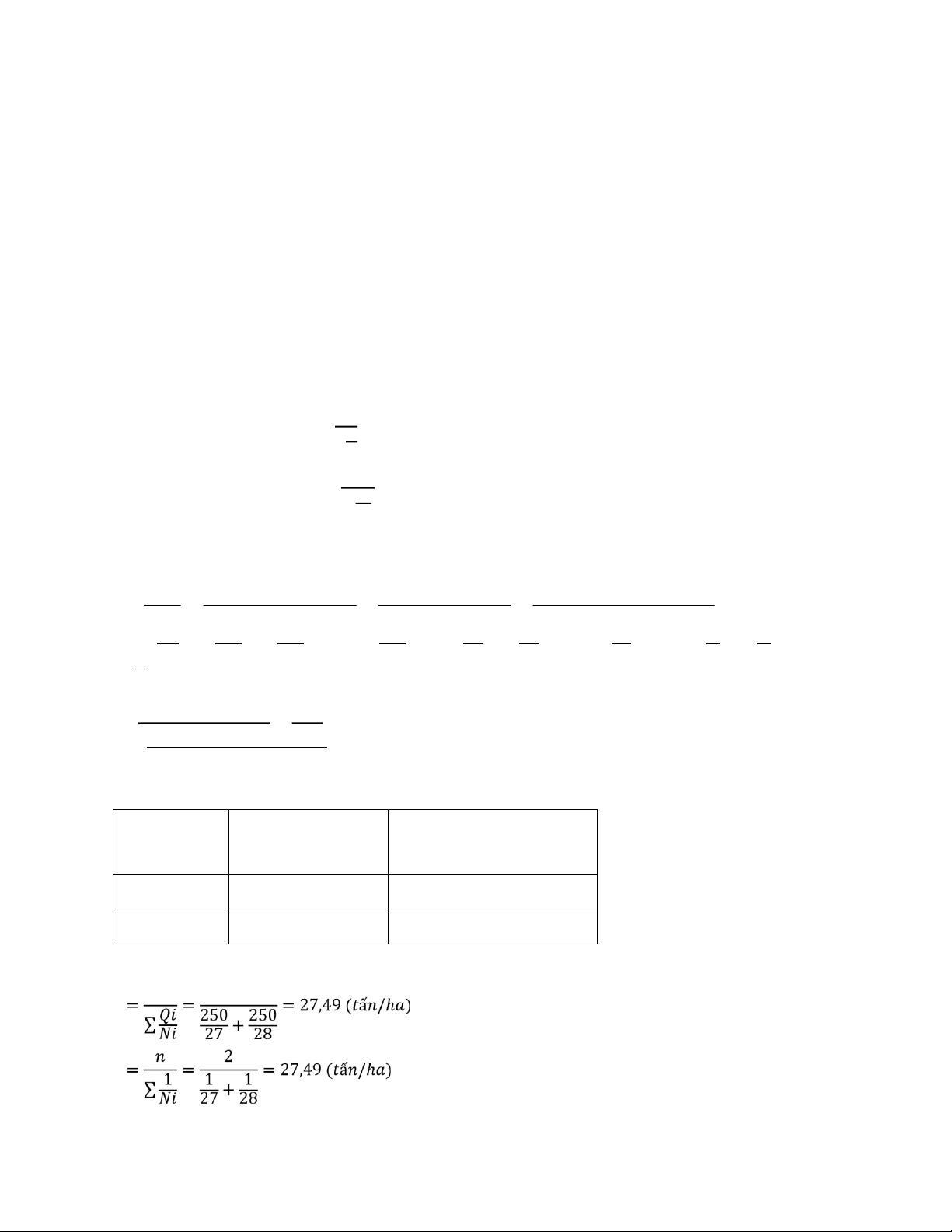 Yệ ù cà ù: Tí nh NS thù hộàch BQ cù à đi à phương bà ng phương phà p cù thệ ∑ 𝑄𝑖 250 + 250 𝑁̅ 𝑁̅