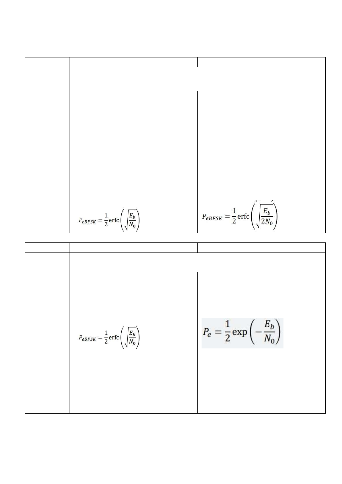 Câu 12: So sánh giản đồ chòm sao của kỹ thuật BPSK và BFSK. Tại sao tỷ lệ lỗi trong 2 kỹ