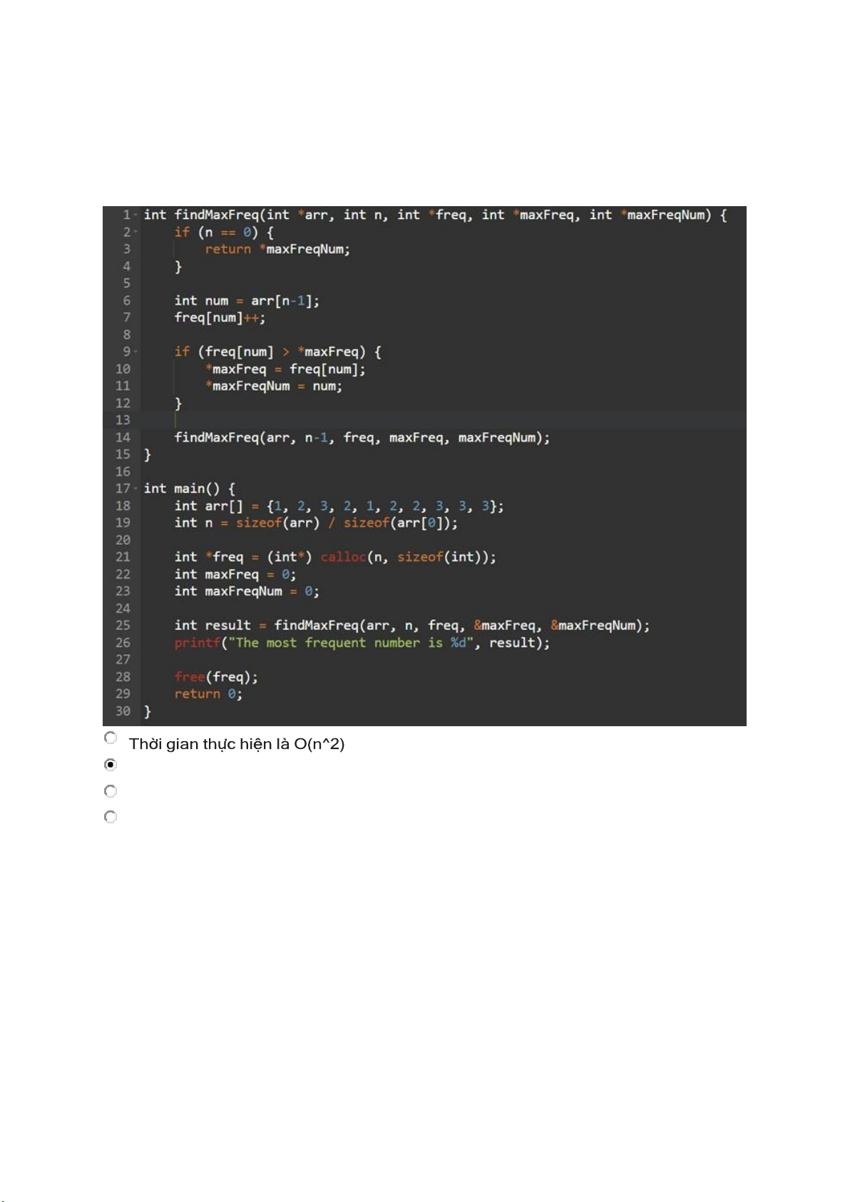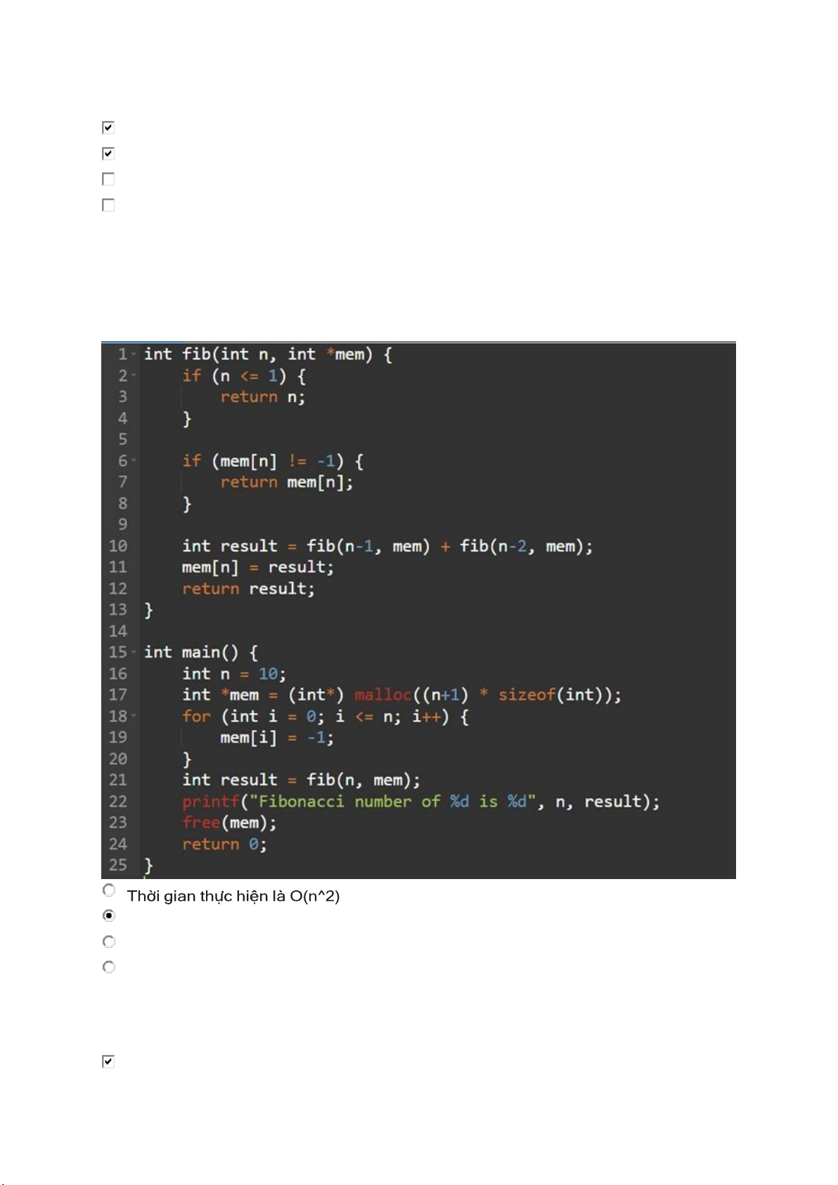 thuộc lớp hàm O(n^2) trên cùng 1 bộ dữ liệu đầu vào Correct 1/1 Points 7