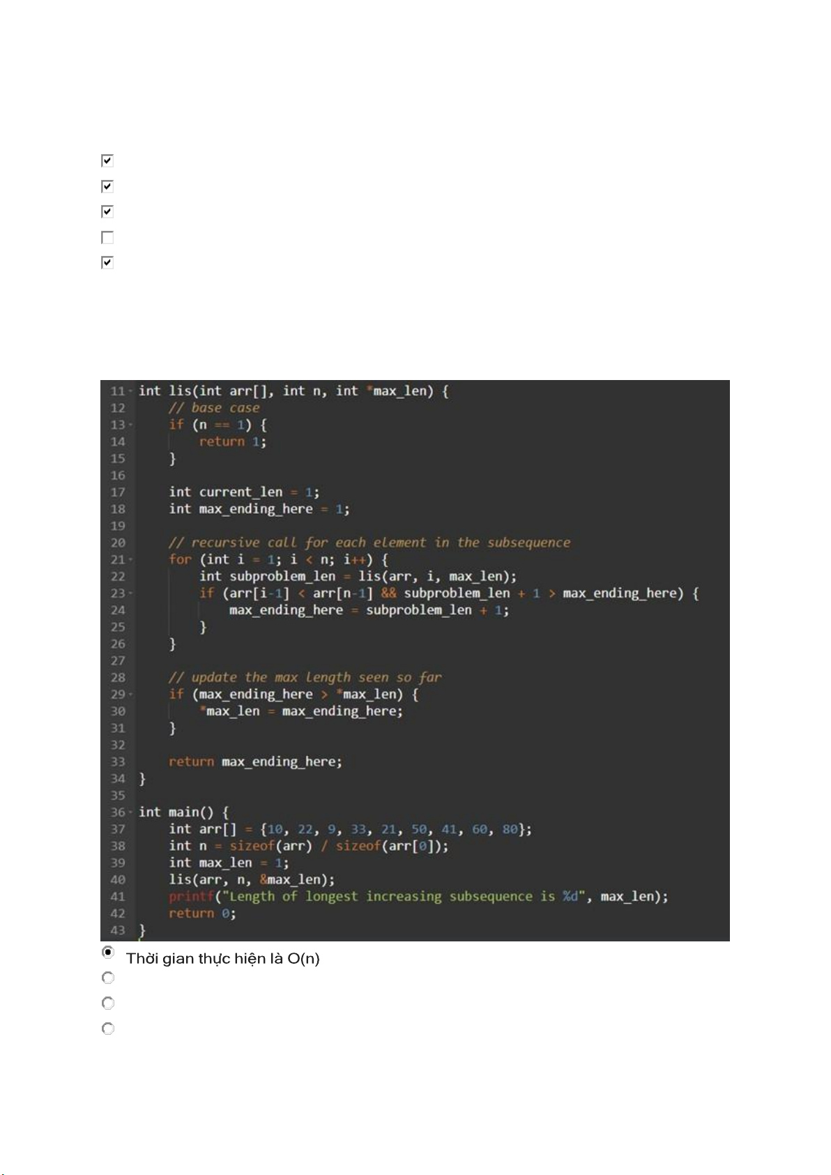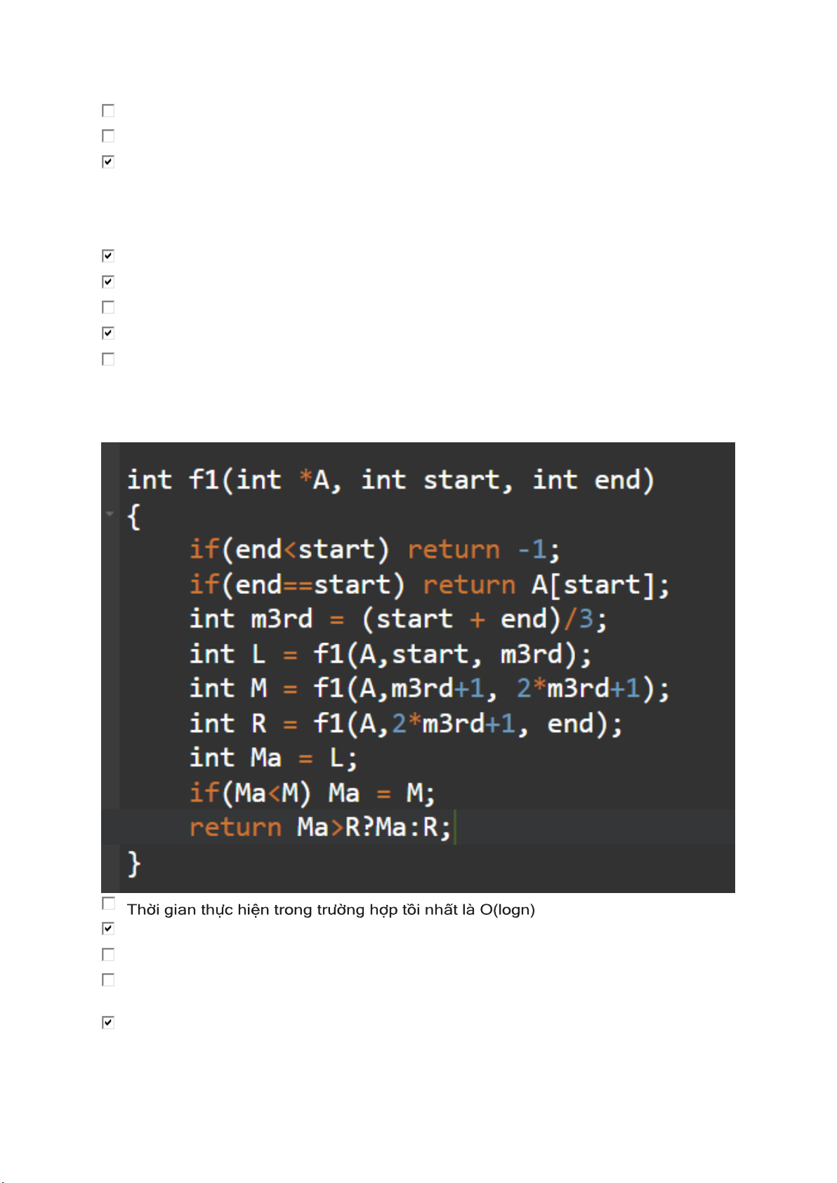 Thời gian thực hiện là O(logn) Correct 1/1 Points 5