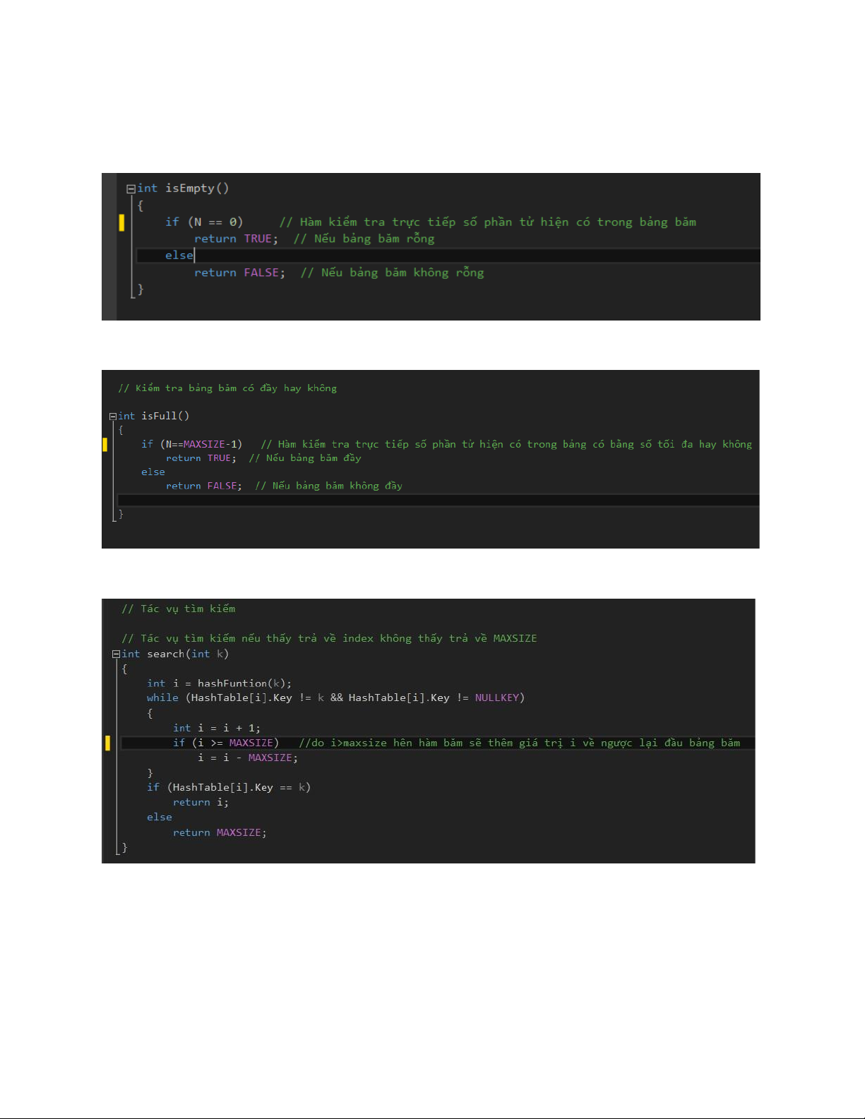 5. Kiểm tra bảng băm có đầy hay không 6. Tác vụ tìm kiếm