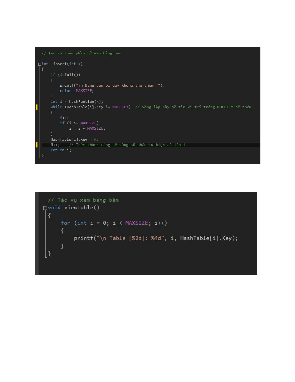 7. Tác vụ thêm một phần tử vào bảng băm 8. Tác vụ xem bảng băm