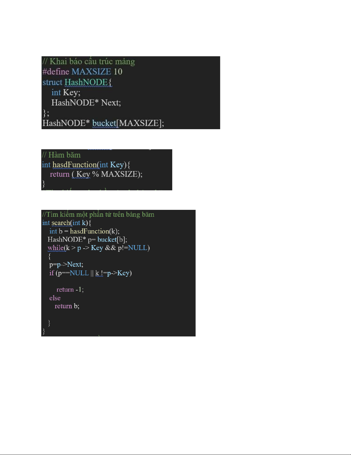 địa chỉ của khóa Key của phần tử cần tìm và tìm trên bucket tương ứng. 6.2.2 Mô tả 1. Khai báo bảng băm 2. Hàm Băm