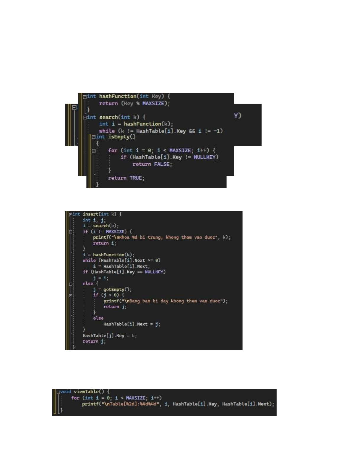 mố tả bảng bằm sau khi khởi động: 0 NULLKEY -1 1 NULLKEY -1 2 NULLKEY -1 3 … … … MAXSIZE - 1 NULLKEY -1