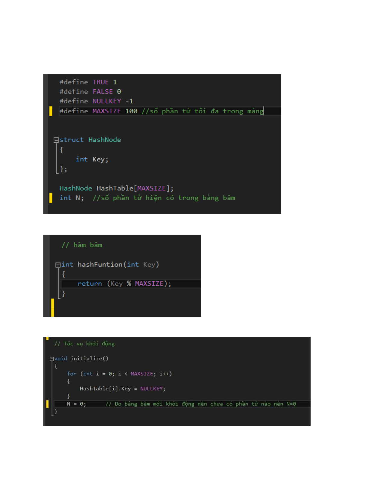 1. Khai báo cấu trúc bảng băm và định nghĩa các hằng số 2. Hàm băm 3. Tác vụ khởi động