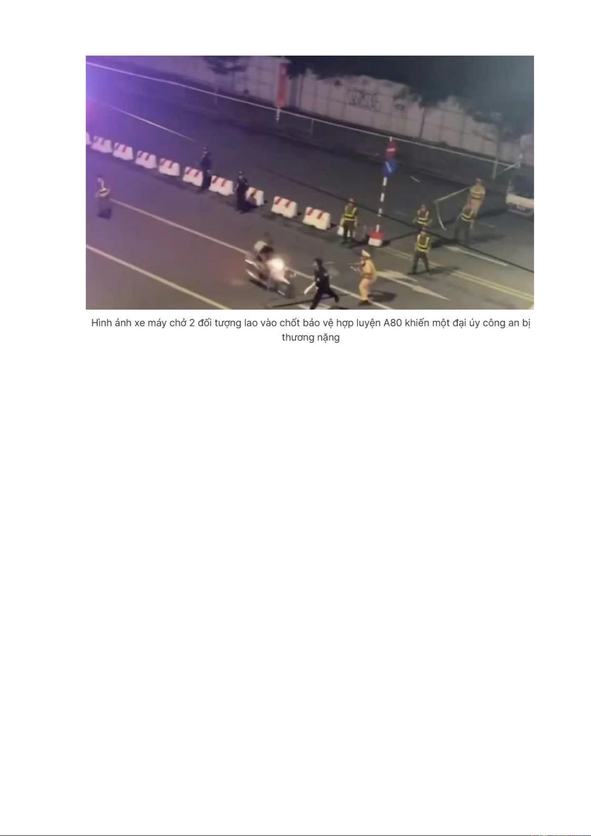 2 đối tượng lao xe vào CSCĐ làm nhiệm vụ bảo vệ buổi hợp luyện A80 vào tối ngày 21/08/2025