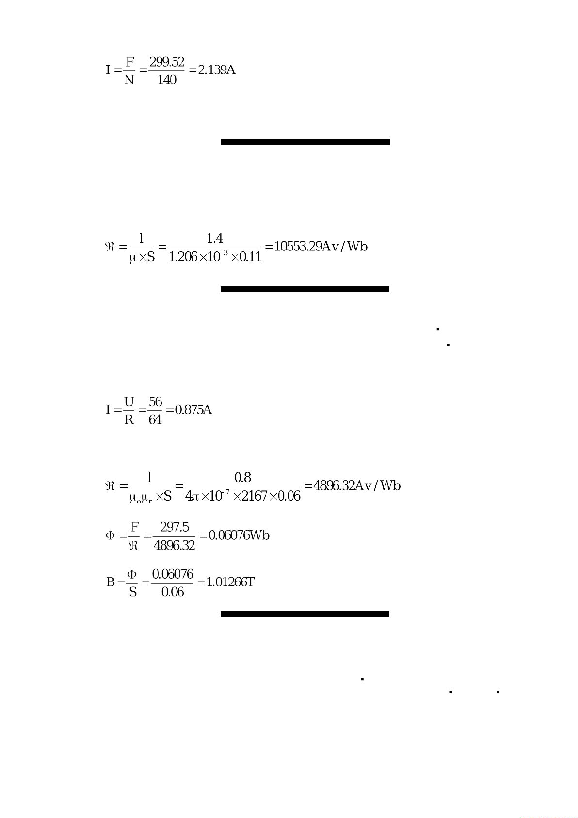 F = N × I = 340 × 0.875 = 297.5Av Từ trở của mạch từ: Từ thoong trong lõi thép: Từ cảm trong lõi thép:
