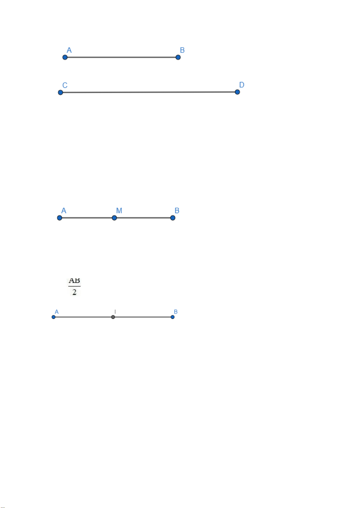 - Nếu điểm I nằm giữa hai điểm A và B sao cho IA = IB thì I gọi là trung điểm của đoạn thẳng AB. Khi đó: IA = IB = . 9. Góc