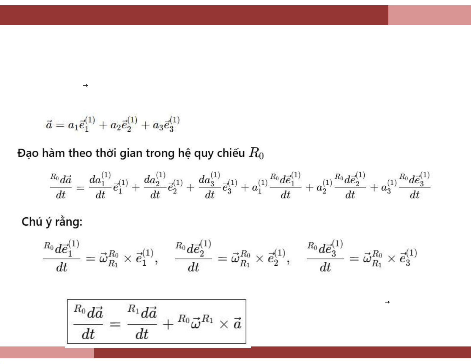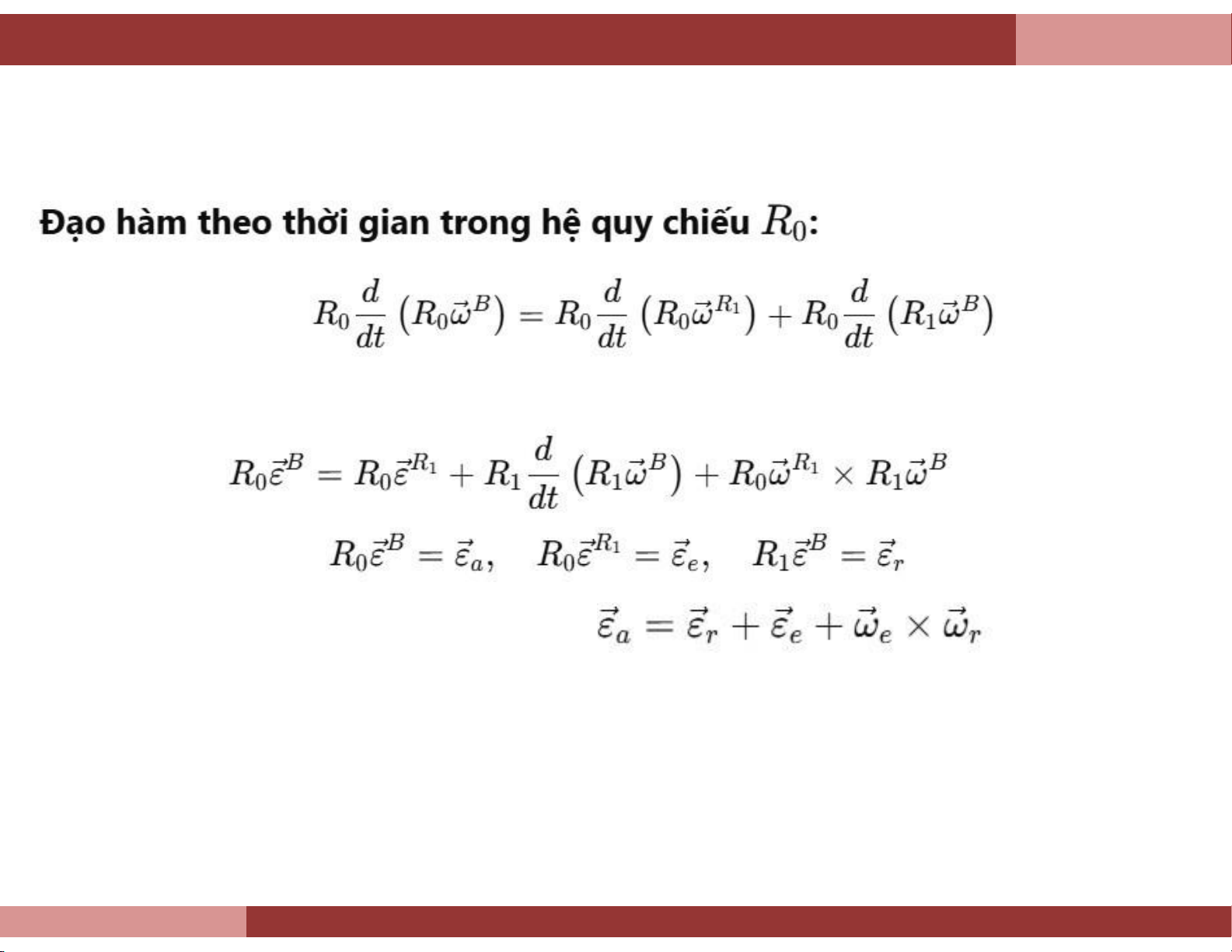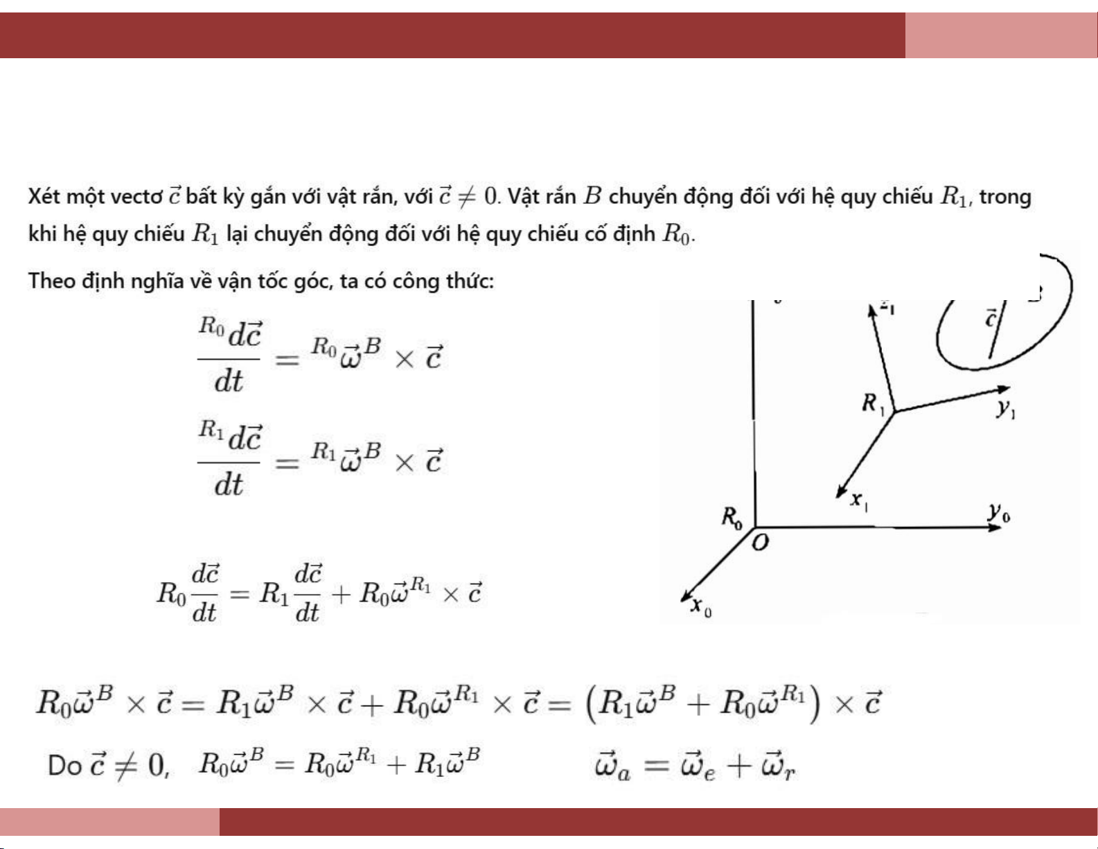 Đạo hàm biểu thức (9.2.1) theo thời gian trong hệ quy chiếu R0, ta được: (9.2.2) Theo định nghĩa ta có