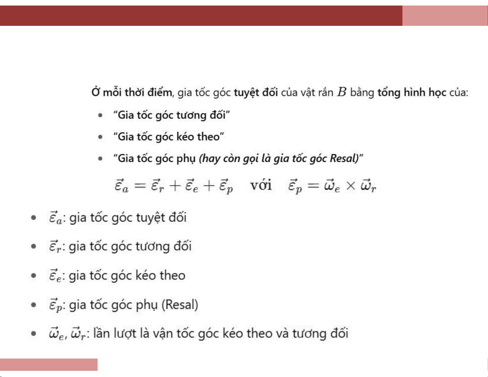 Gia tốc góc tuyệt đối theo công thức (9.3.4) (9.3.10) Theo định nghĩa
