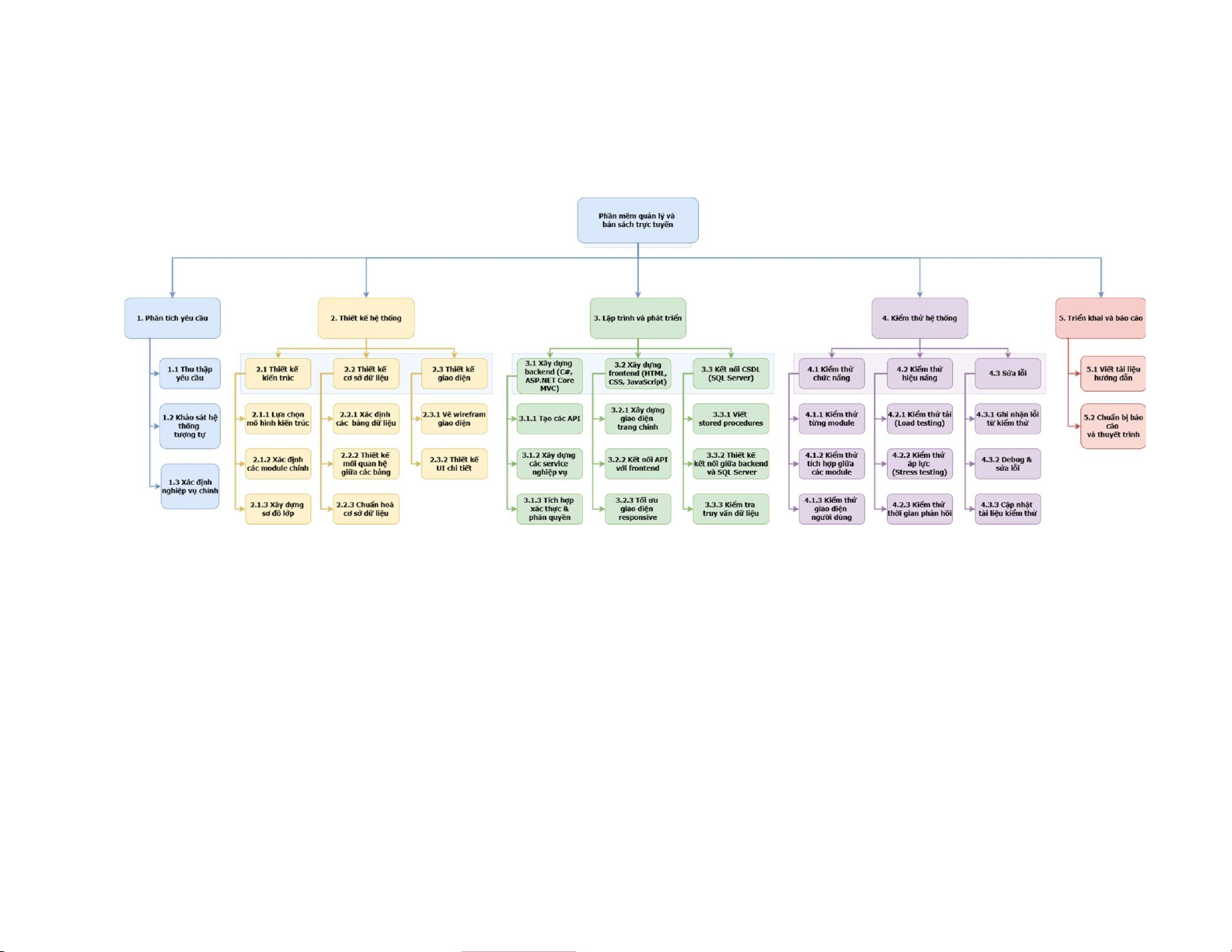 (phân tích, thiết kế, phát triển, kiểm thử, triển khai).