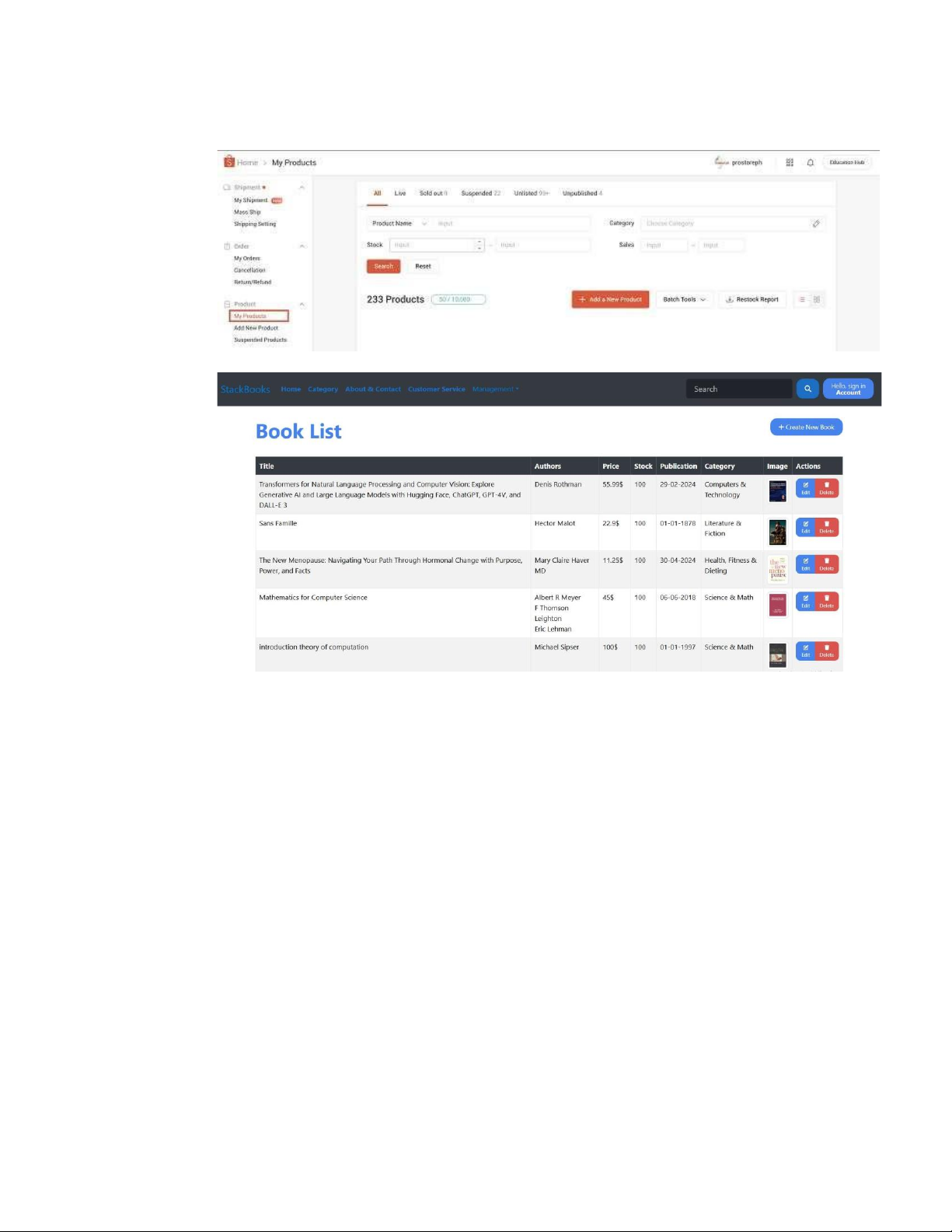 ● Mô tả: Cửa hàng cần quản lý thông tin chi tiết của từng cuốn sách. ● Cụ thể: