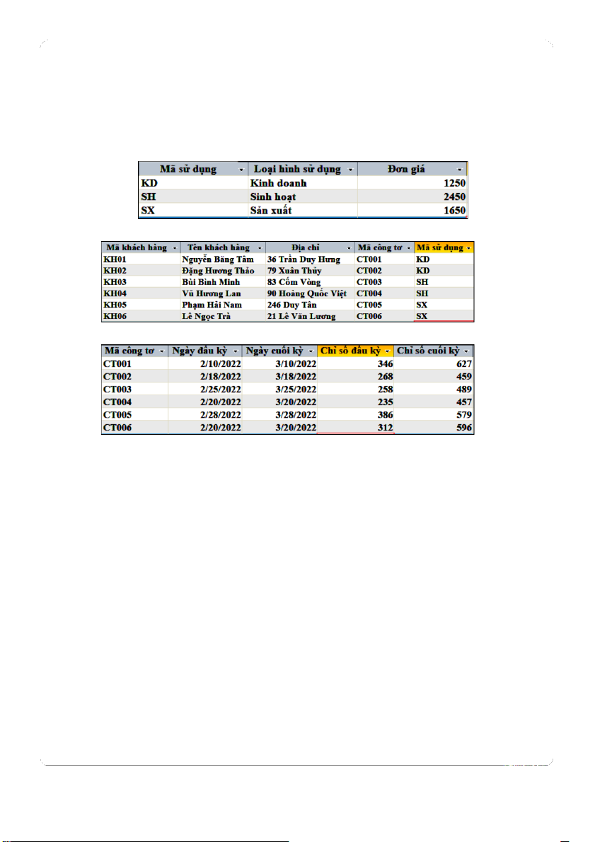 Tên khách hàng, Địa chỉ, Loại hình sử dụng, Mã công tơ, Chỉ số đầu kỳ, Chỉ số cuối kỳ,