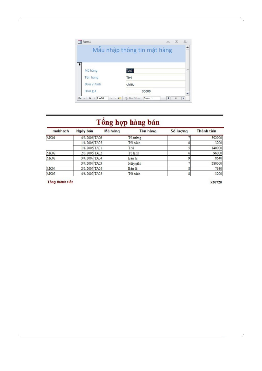 Câu 3: Tạo Report nhập dữ liệu theo mẫu sau: