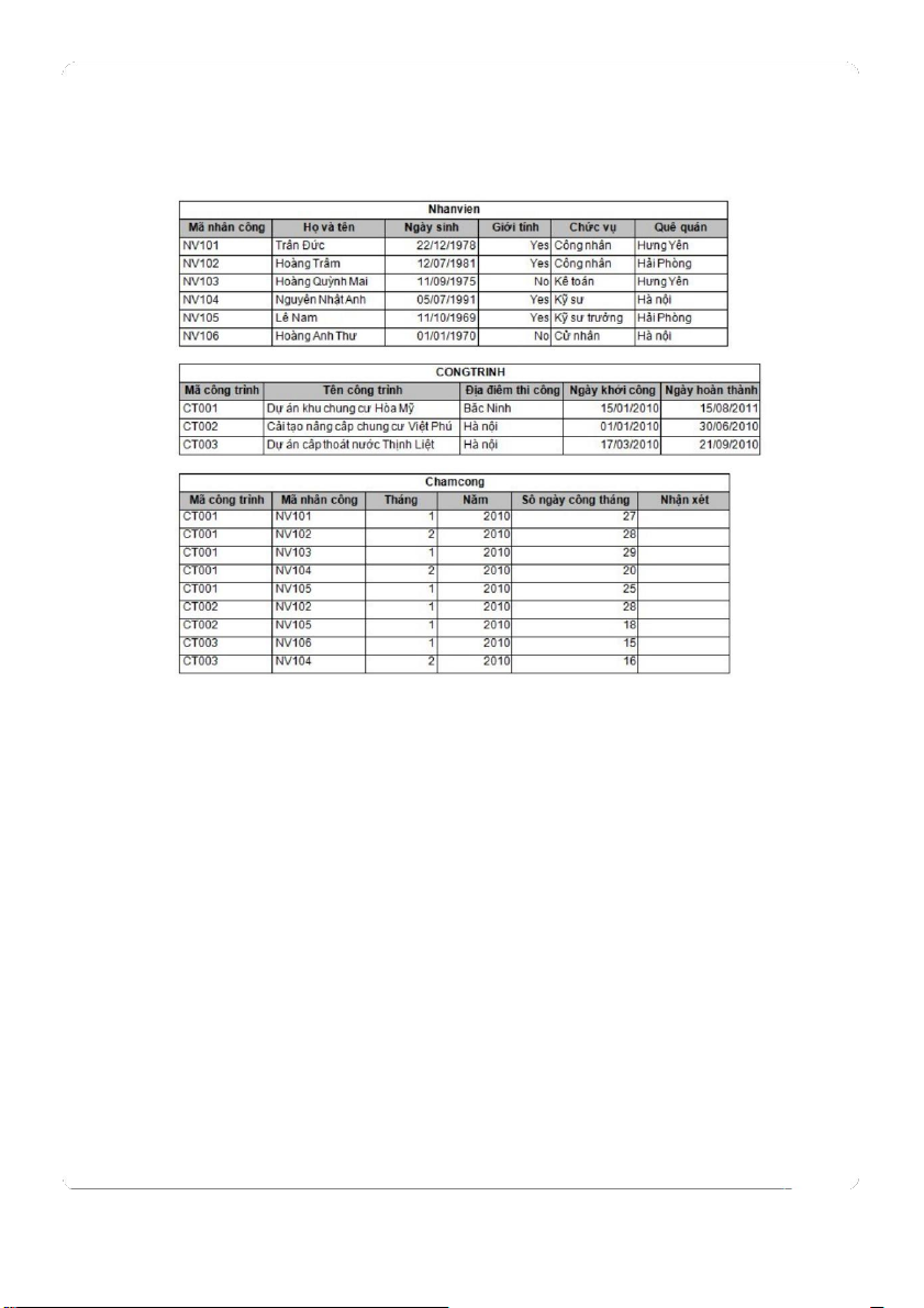 Câu 1: Anh chị hãy sử dụng HQTCSDL Access để tạo cơ sở dữ liệu trên và