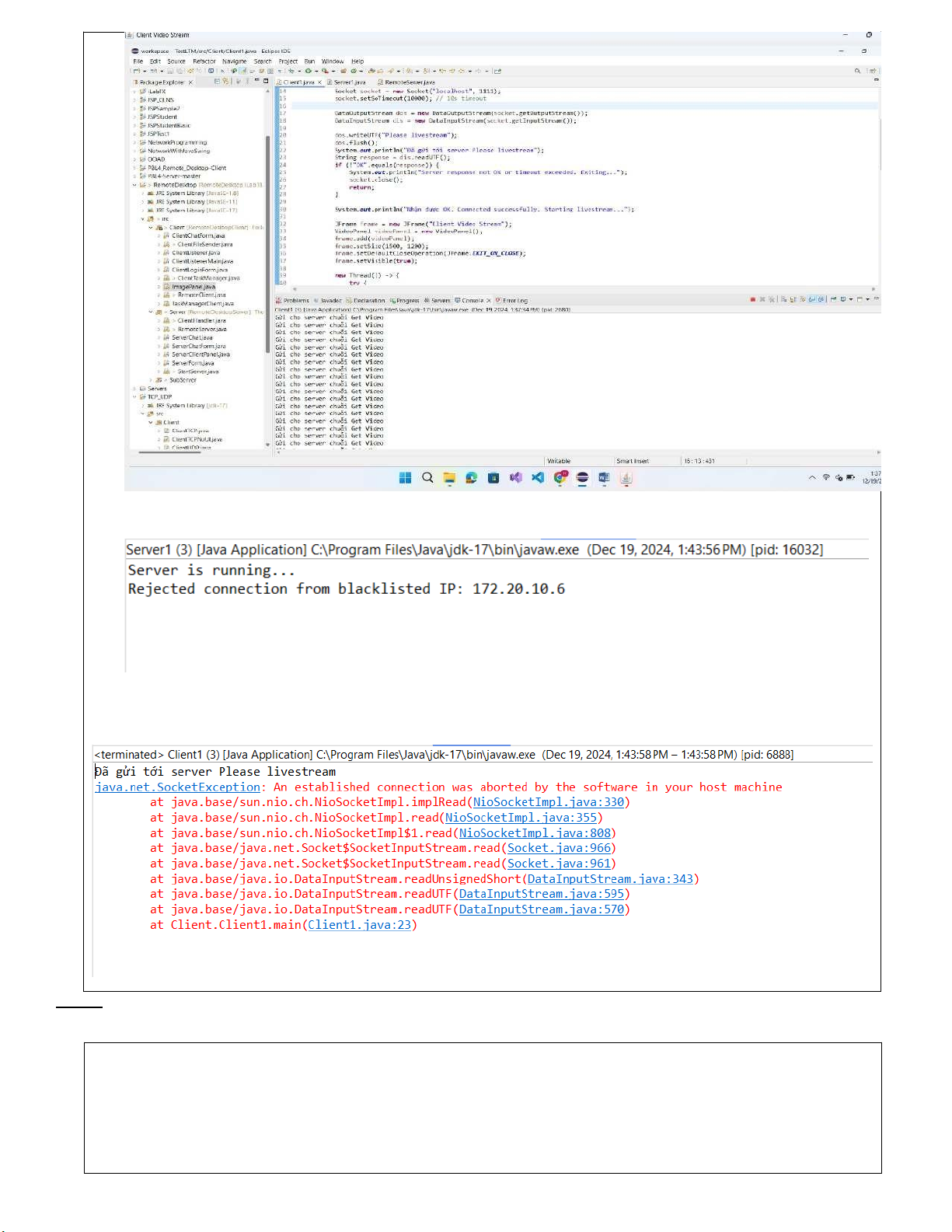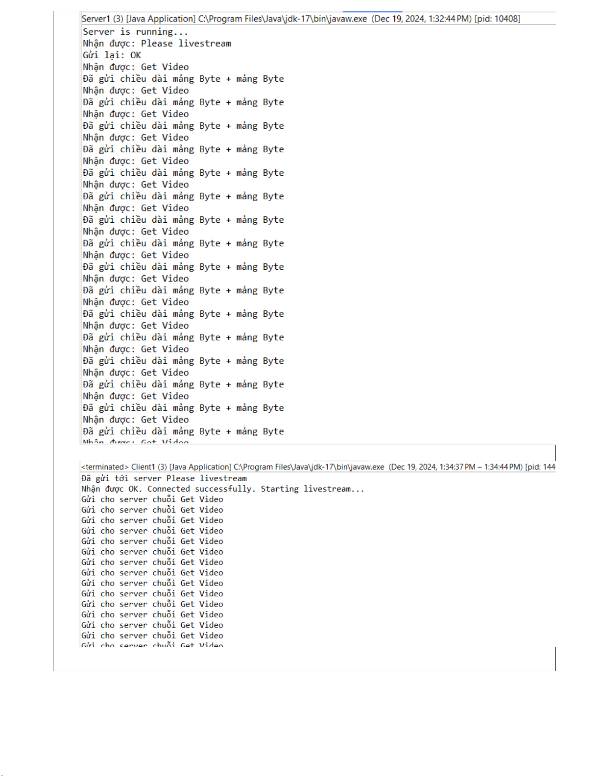 • Trường hợp 1: Client đã nhận được chuỗi “OK” Phía server: Phía client: Hình ảnh livestream: