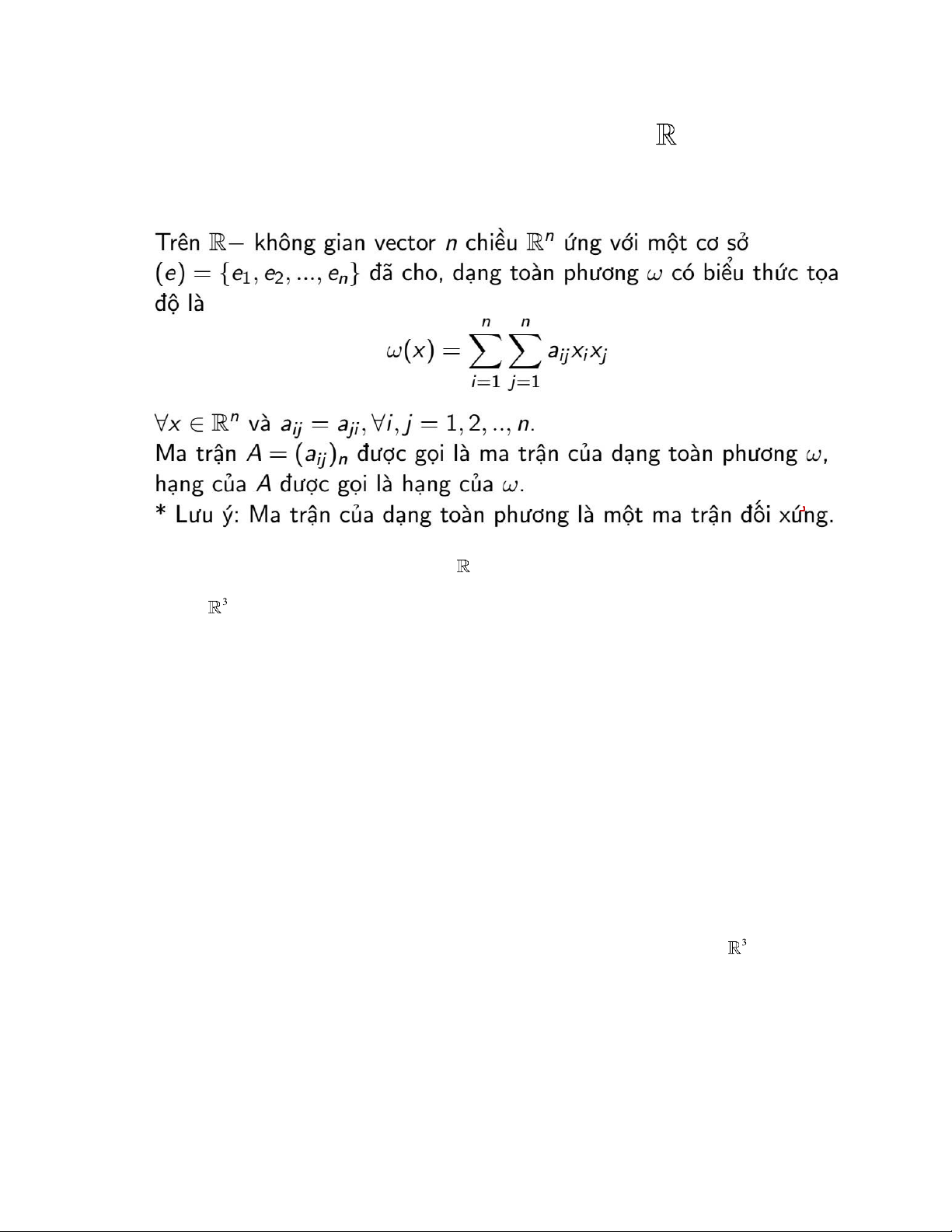 DẠNG n TOÀN PHƢƠNG TRÊN I. Định nghĩa: