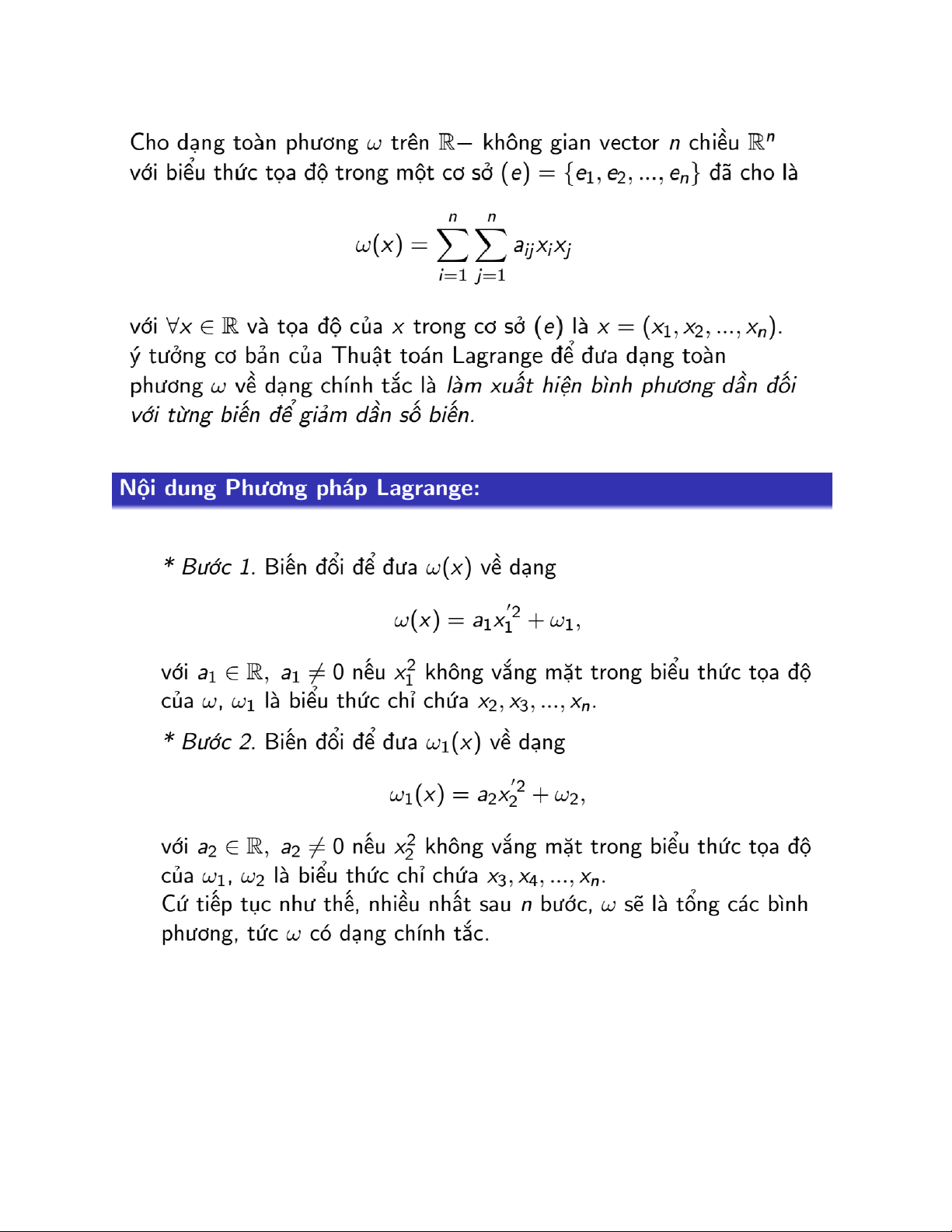 III. Phương pháp Lagrange đưa dạng toàn phương về dạng chính tắc: