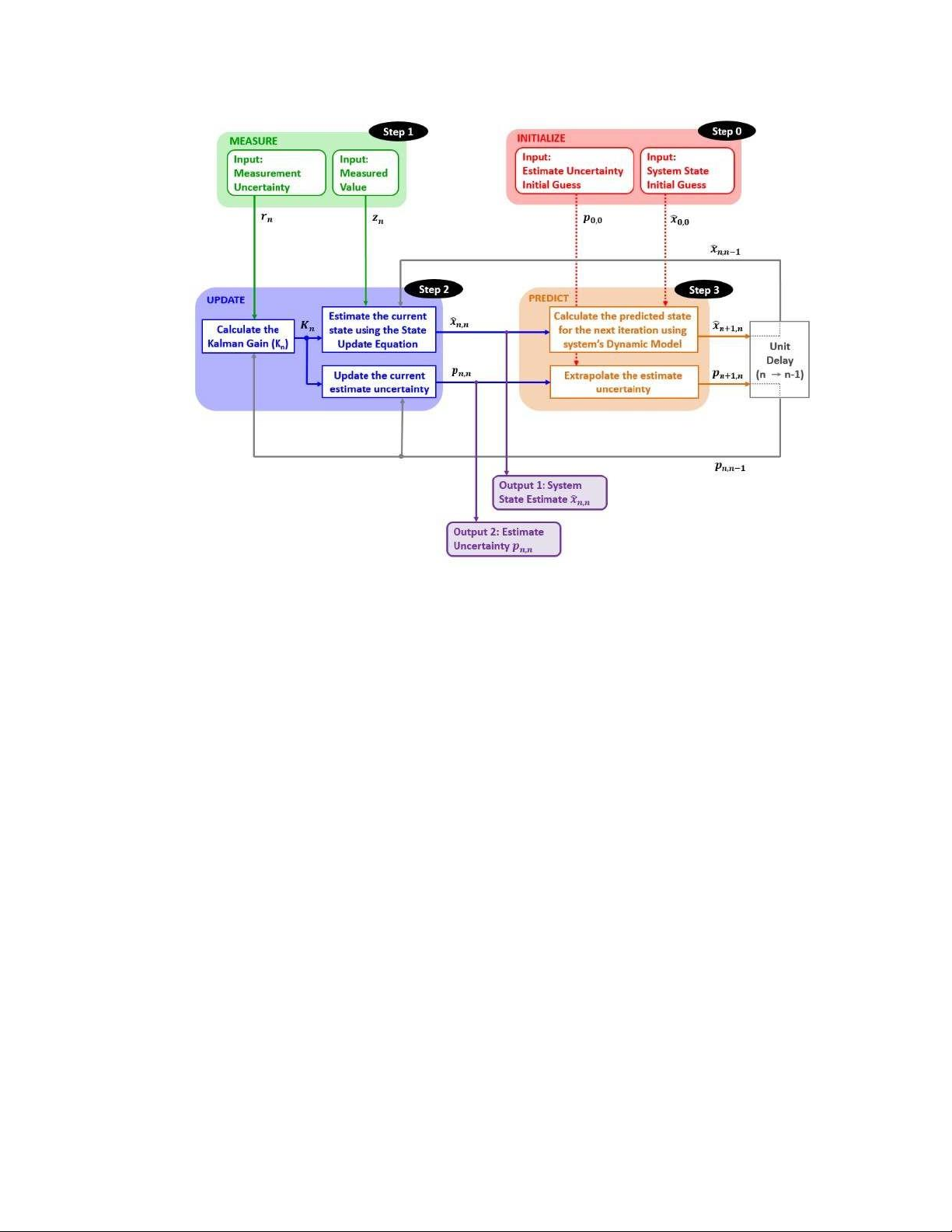 Ở lần lặp lại bộ lọc đầu tiên, việc khởi tạo được coi là Ước tính và phương sai trạng thái trước đó.