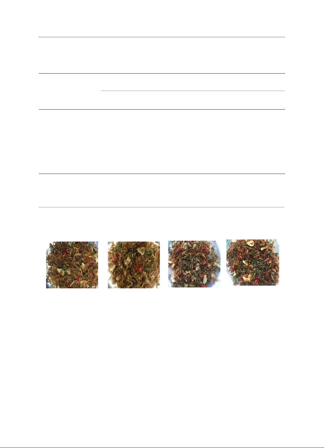 mùi sản phẩm; đường và dầu hào bổ sung làm tăng giá trị cảm quan; tỉ lệ lá chúc bổ sung ảnh