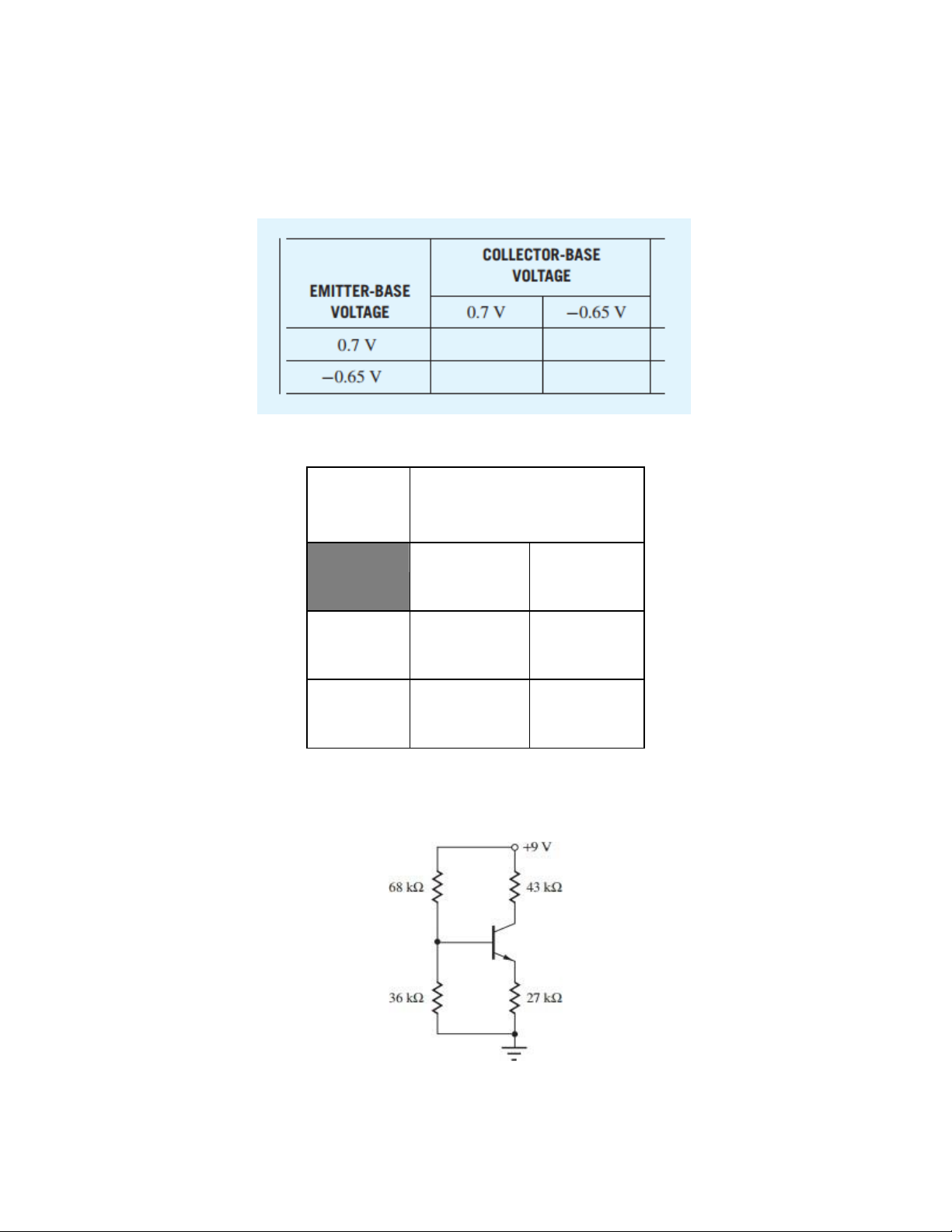Câu 3. Hãy cho biết vùng hoạt động của BJT pnp trong bảng sau. Giải: Emitter-Base Collector-Base Voltage Voltage pnp 0.7 V -0.65 V Tích cực thuận 0.7 V Bão hòa -0.65 V Tích cực ngược Ngắt