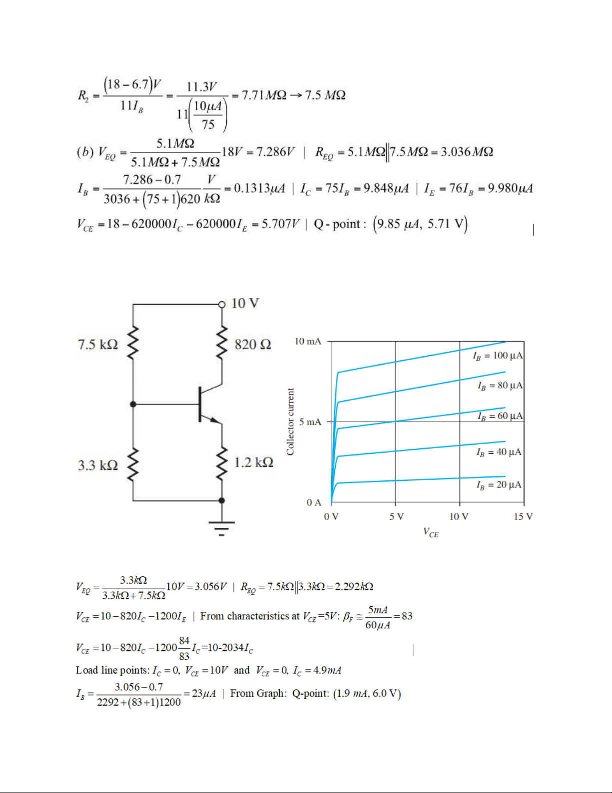Câu 8. Tìm điểm làm việc của BJT trong mạch ở hình dưới. Biết 𝜷 = 𝟒𝟎. Giải: