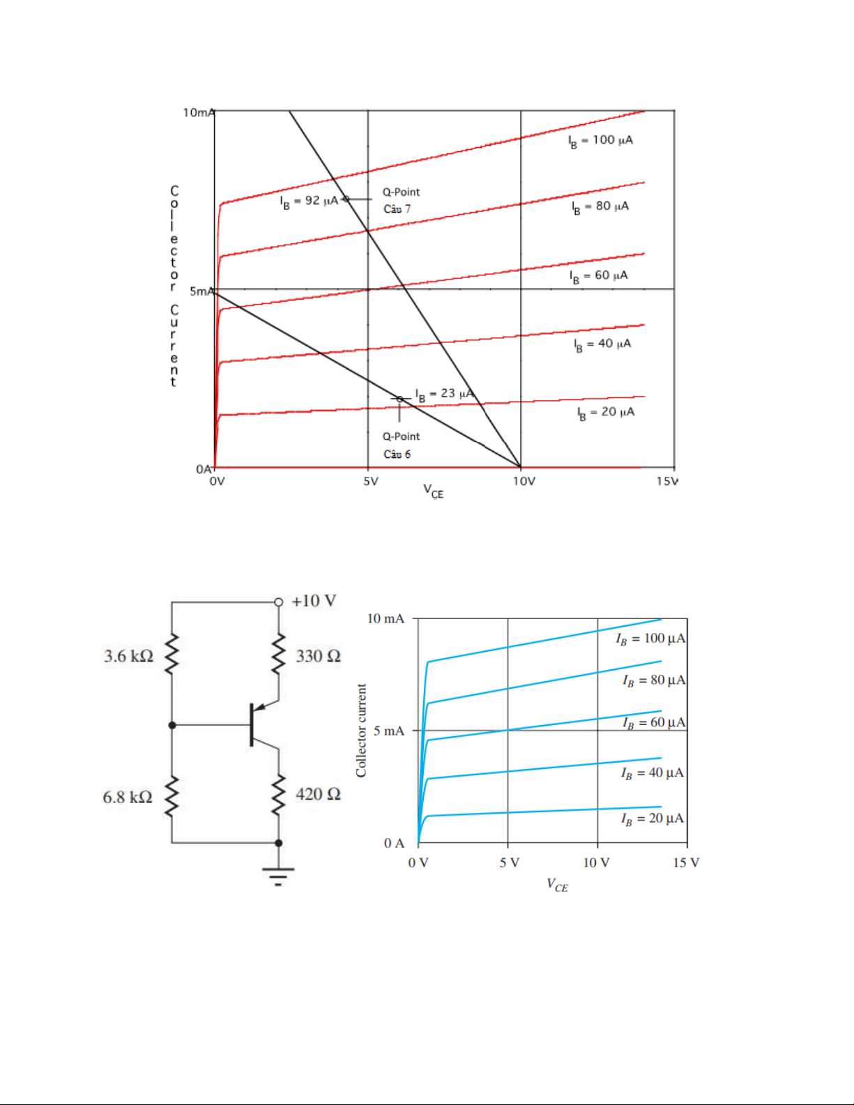 Câu 7. Tìm điểm làm việc tĩnh Q trong hình sau sử dụng phương pháp đường tải.