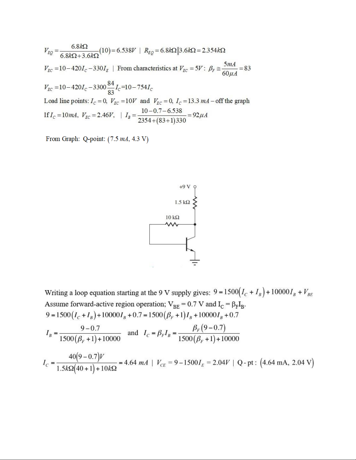 có 𝑰𝒄 = 𝟏𝟎 𝒎𝑨 và 𝑽𝑬𝑪 = 𝟑 𝑽 nếu 𝜷 = 𝟔𝟎. (b) Tìm điểm làm việc tĩnh Q nếu 𝜷 thực sự chỉ bằng 40. Giải: