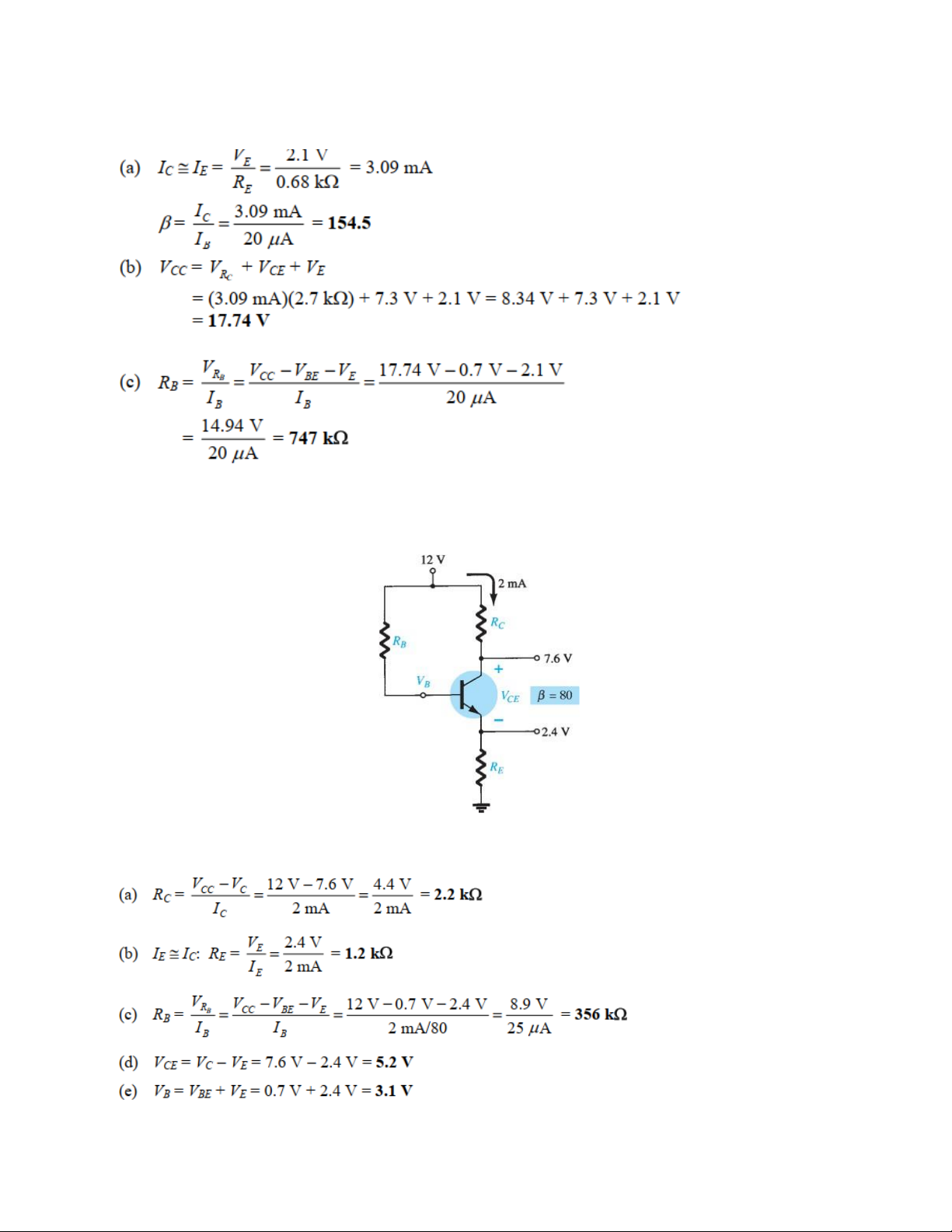 𝑹𝑩, (d) 𝑽𝑪𝑬, (e) 𝑽𝑩. Giải: