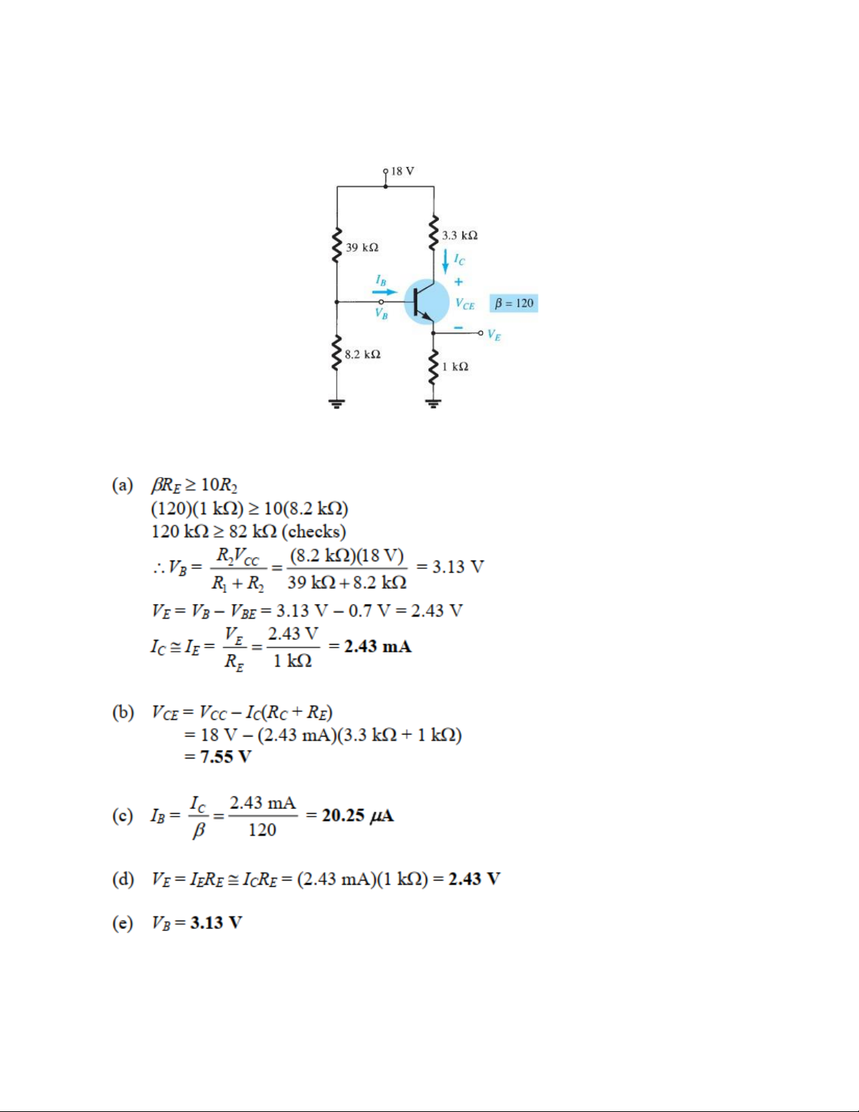 phương pháp gần đúng nếu thỏa mãn điều kiện. (a) 𝑰𝒄, (b) 𝑽𝑪𝑬, (c) 𝑰𝑩, (d) 𝑽𝑬, (e) 𝑽𝑩. Giải: