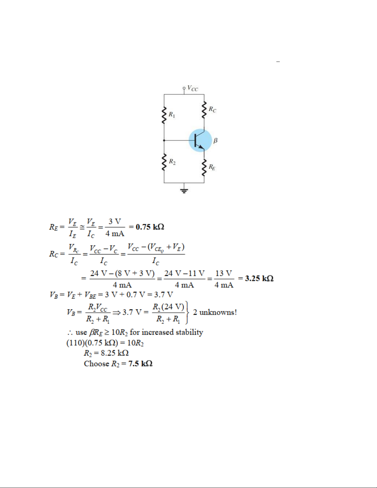 Câu 13. Hãy thiết kế mạch phân cực bằng phân áp sử dụng nguồn điện áp 24 V, 𝜷 = 𝟏