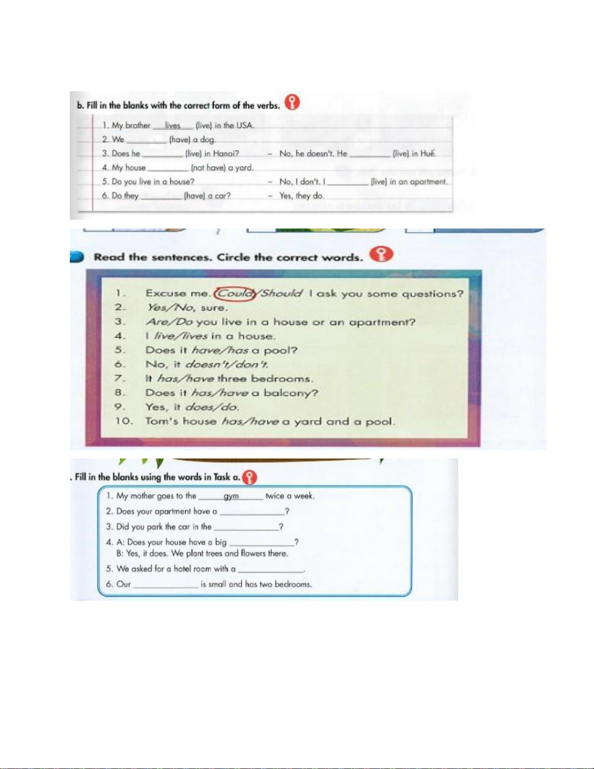 6. – Where do you live? – I (live) in a town house. 7. There (be)