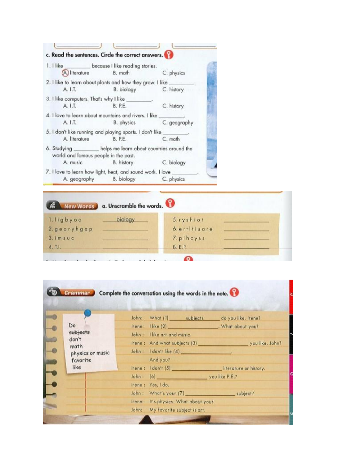 (n) / ˈlɪt.rə.tʃər/ Môn Văn học 6 music (n) / ˈmjuː.zɪk/ Môn Âm nhạc