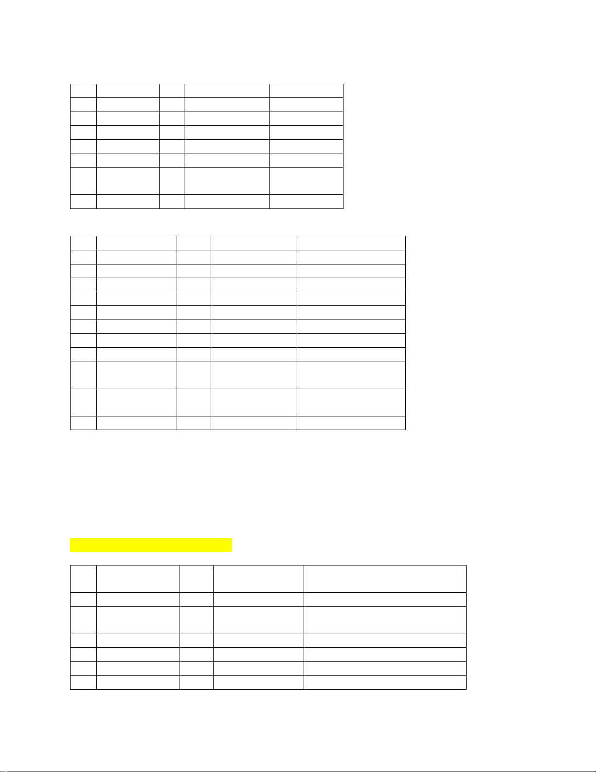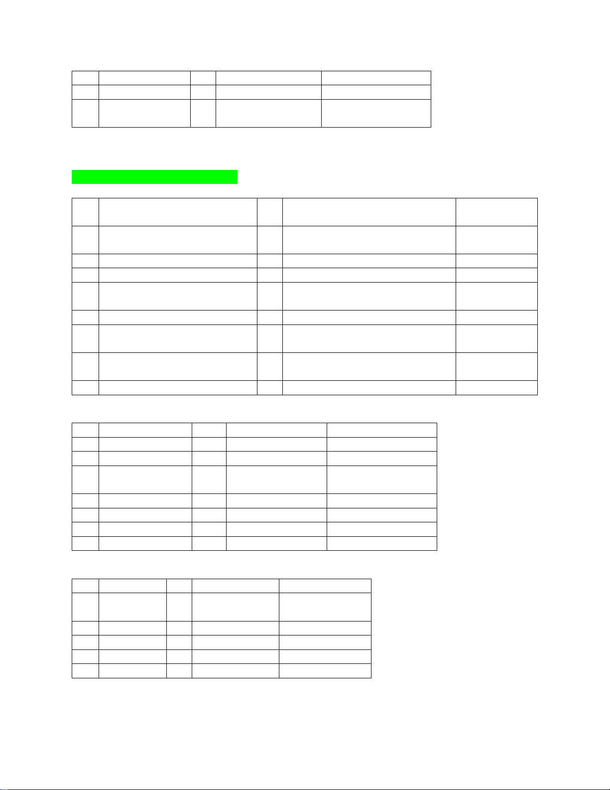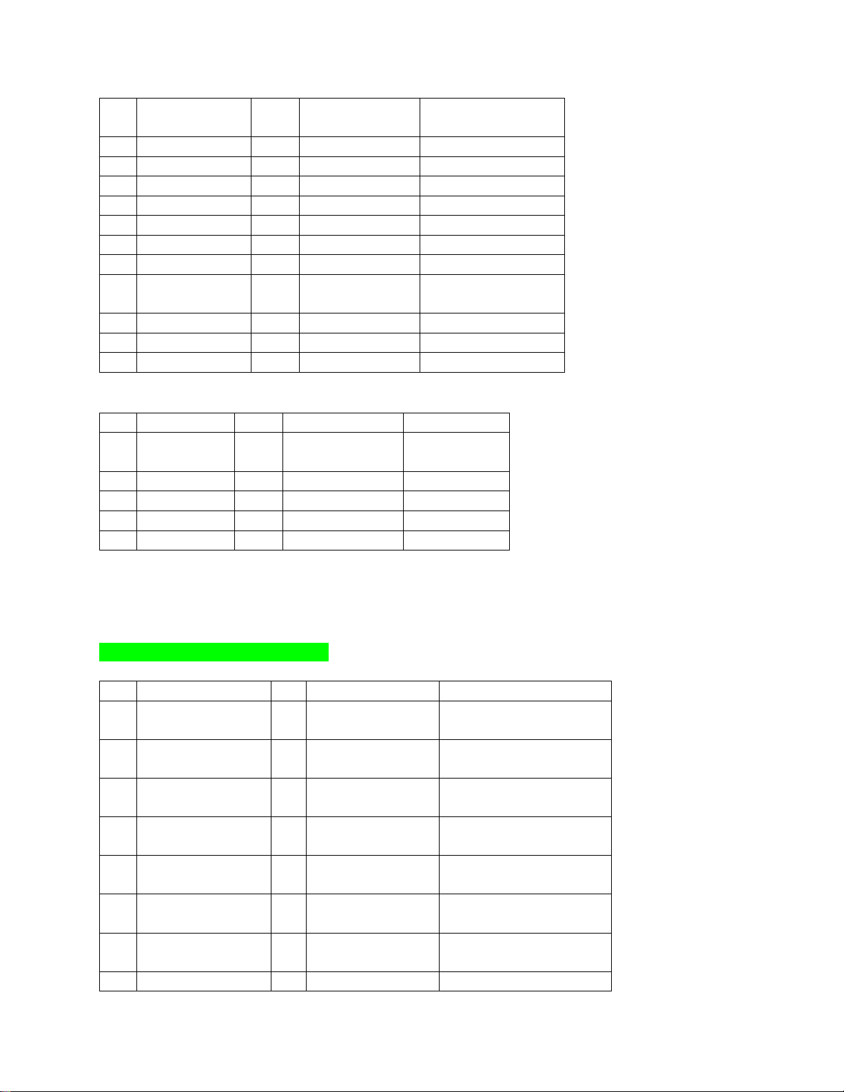 A. VOCABULARY (TỪ VỰNG) Lesson 1 No Words Transcription Meaning 1 blond (adj) /blɒnd/ (Tóc) vàng 2 blue (adj) /bluː/ Màu xanh dương 3 brown (adj) /braʊn/ Màu nâu (adj) 4 glasse /ɡlæsiz/ Mắt kính s 5 long (n) /lɔŋ/ Dài 6 red (adj) /red/ Màu đỏ 7 short (adj) /ʃɔːrt/ Ngắn, thấp 8 slim (adj) /slɪm/ Thon thả, gầy 9 tall (adj) /tɔːl/ Cao Lesson 2 N Transcriptio Words Meaning o n