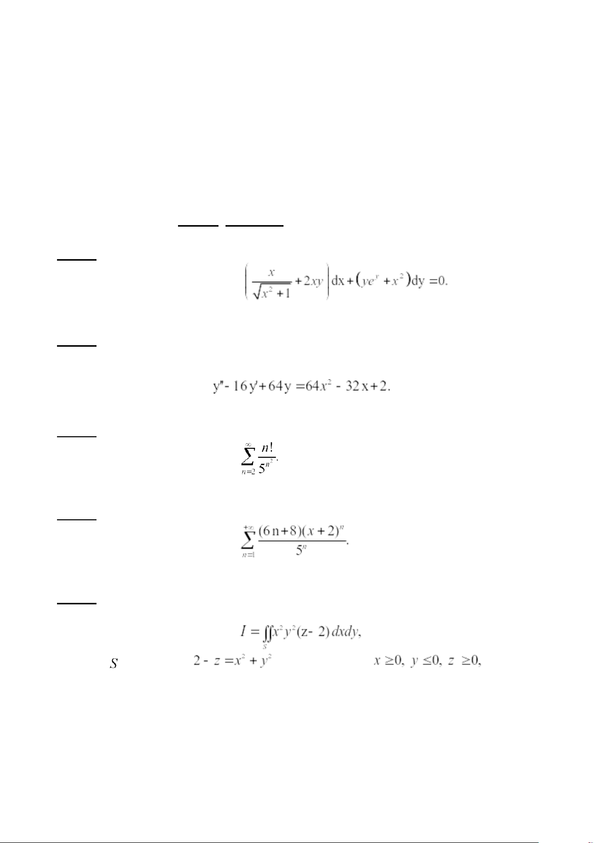 Câu 3: Dùng quy tắc Dalembert suy ra chuỗi HỘI TỤ Câu 4: MHT: Câu 5: