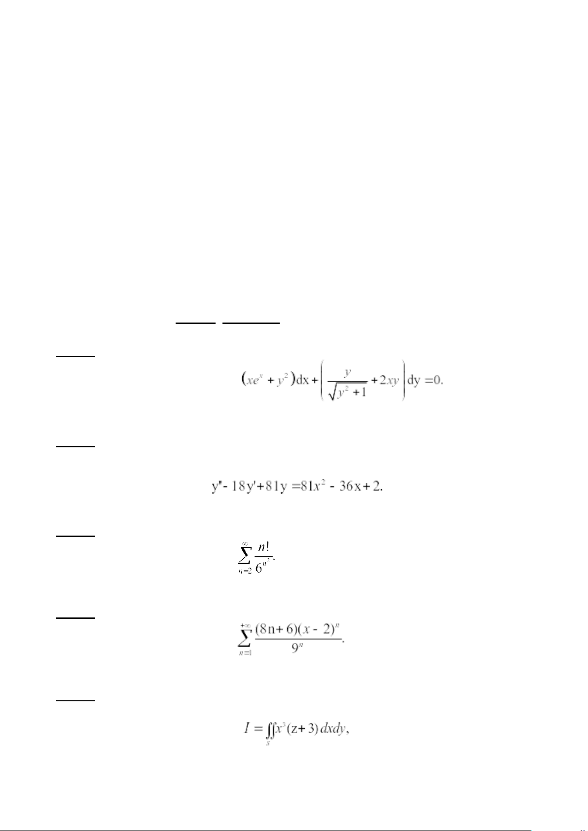 Câu 3: Dùng quy tắc Dalembert suy ra chuỗi HỘI TỤ Câu 4: MHT: Câu 5: -81