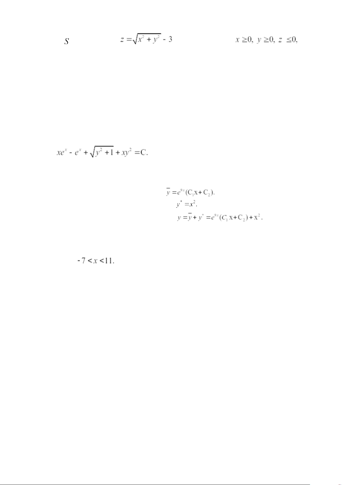 Tính tích phân mặt loại 2: trong đó là phần mặt nằm trong miền: lấy hướng phía dưới.