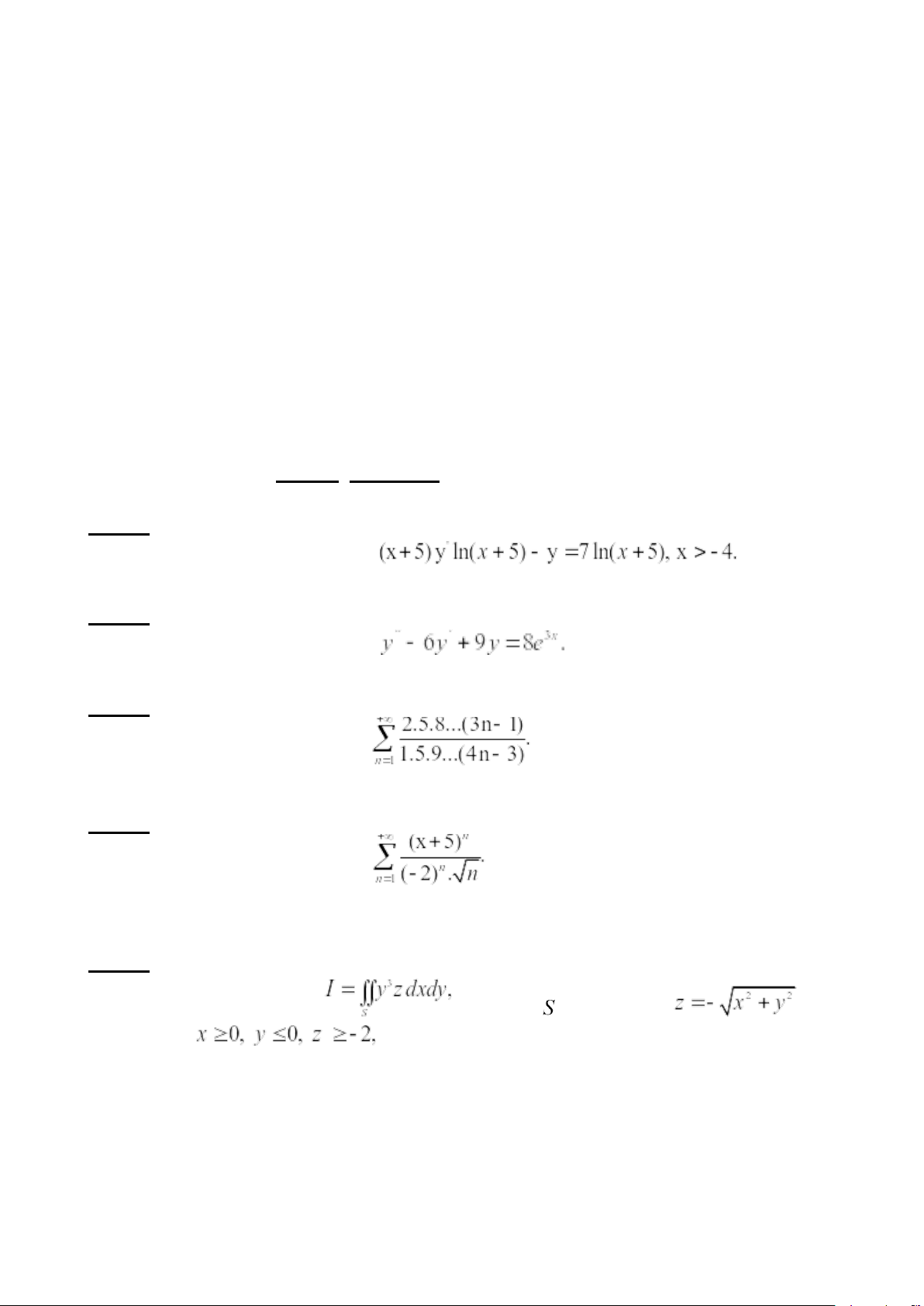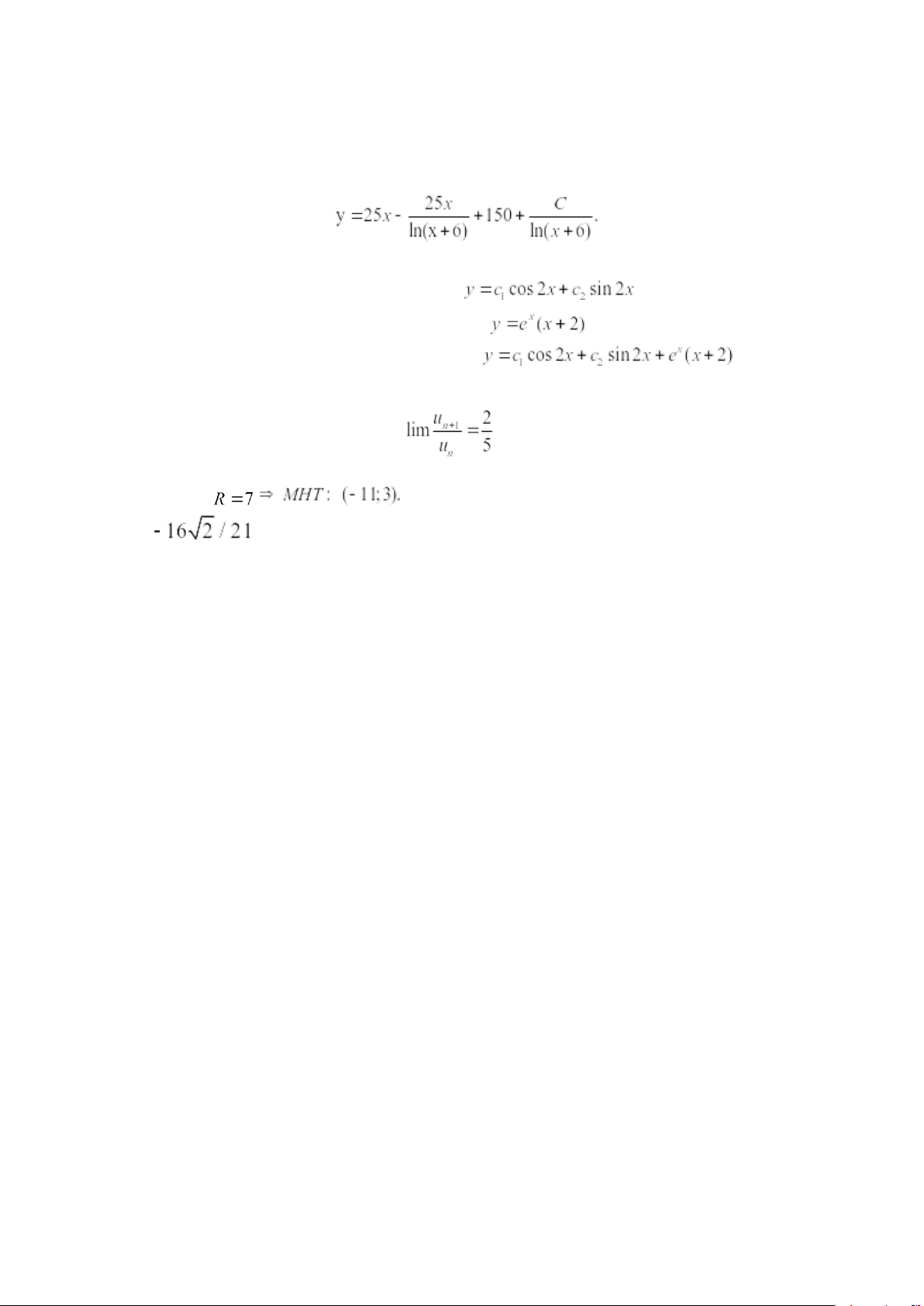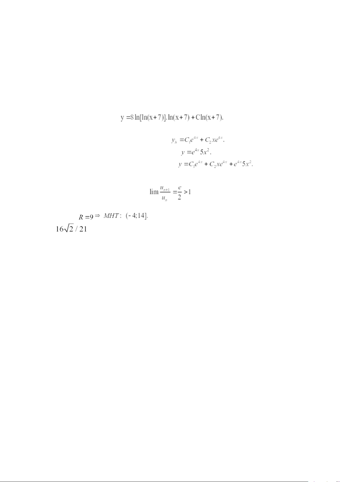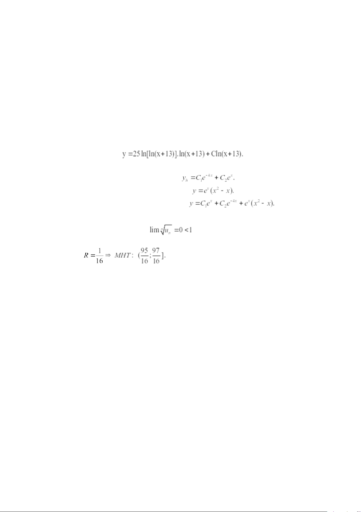 ta suy ra chuỗi đã cho hội tụ. Câu 4: BKHT Câu 5: 64/9.