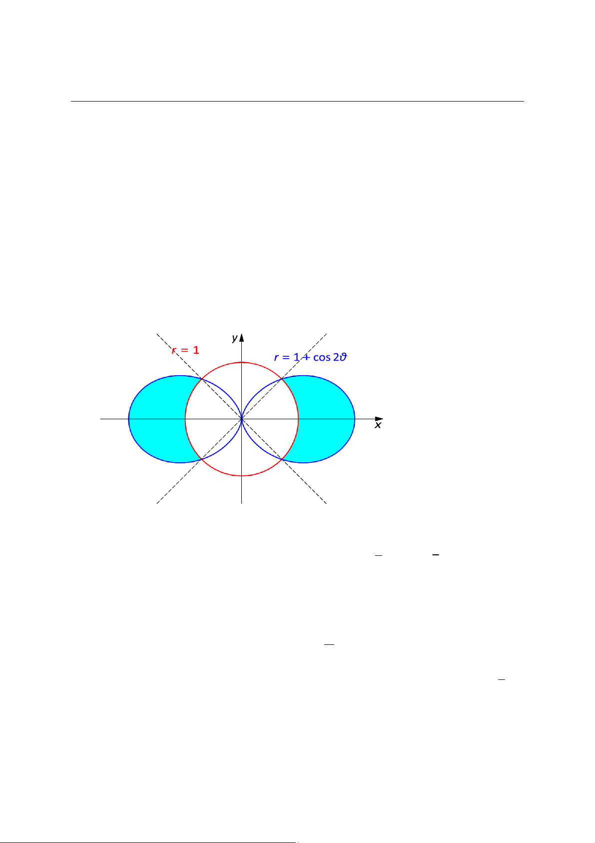 Lời giải. 1. Tính diện tích của miền nằm bên trong đường r = 1 + cos 2θ và bên ngoài đường tròn r = 1. Giải hệ phương trình: π π