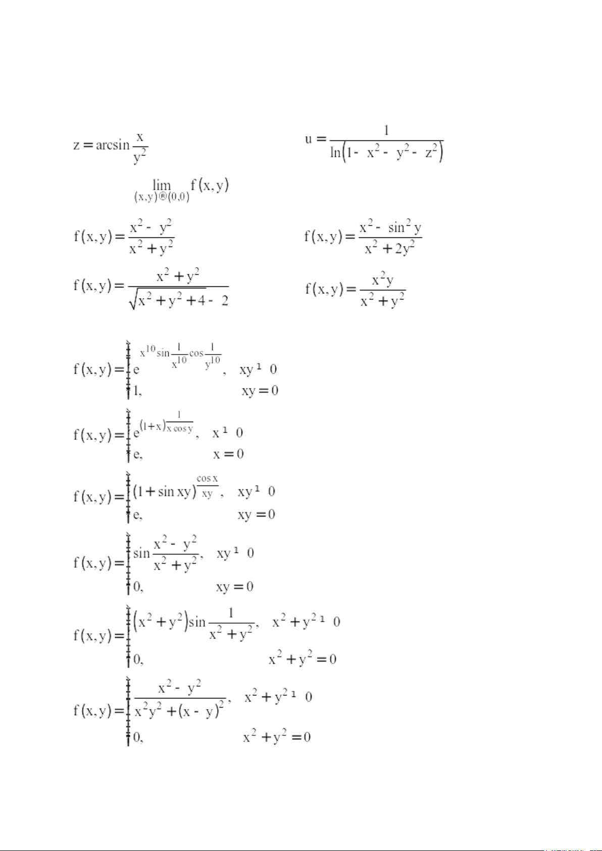 Bài 3. Xét tính liên tục của các hàm số sau tại các điểm đã cho: a) tại điểm (0,0) b) tại điểm (0,0) c) tại điểm (0,0) d) tại điểm (0,0) e) tại điểm (0,0). f) tại điểm (0,0) 1 g) tại điểm (0,0)