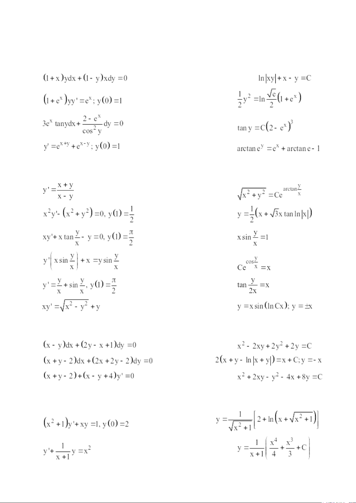 Bài 1. Giải các phương trình tách biến sau: a) b) c) d)