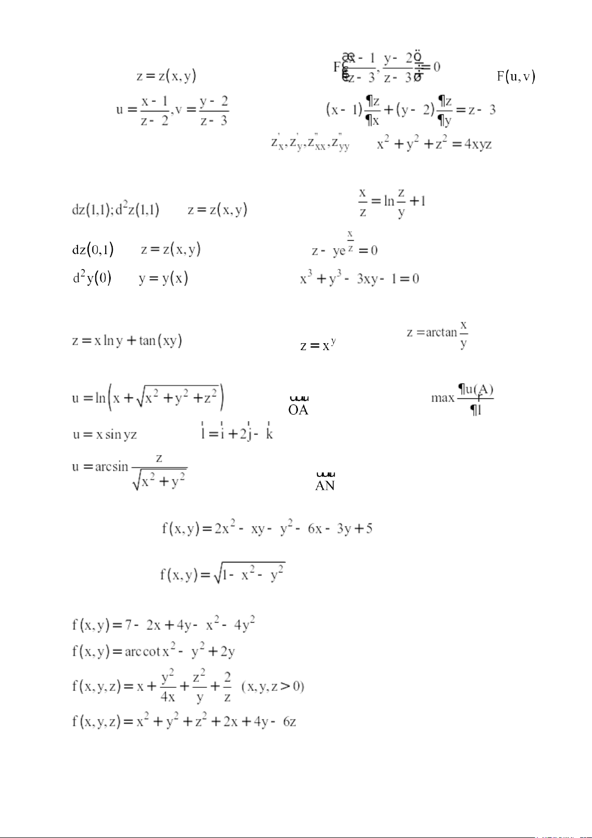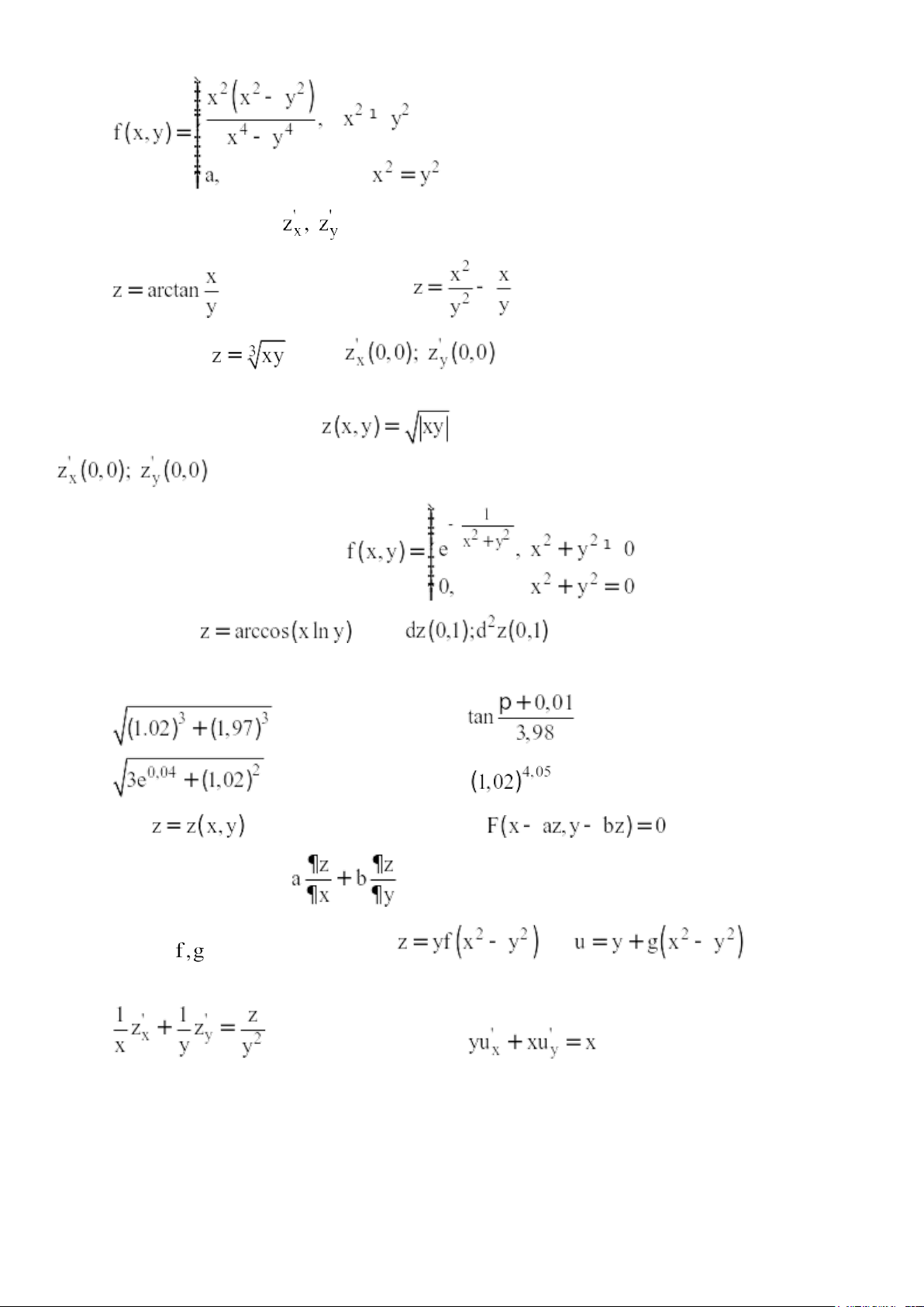 Bài 7. Khảo sát tính khả vi của hàm số tại điểm (0,0). Bài 8. Cho hàm số . Tính .