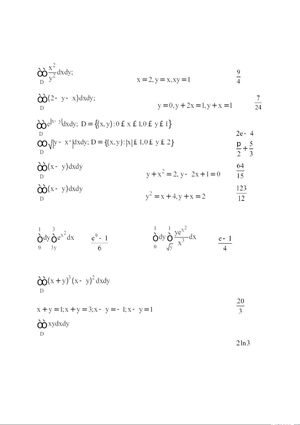 Bài 1. Tính tích phân kép sau trên miền D được chỉ ra a)
