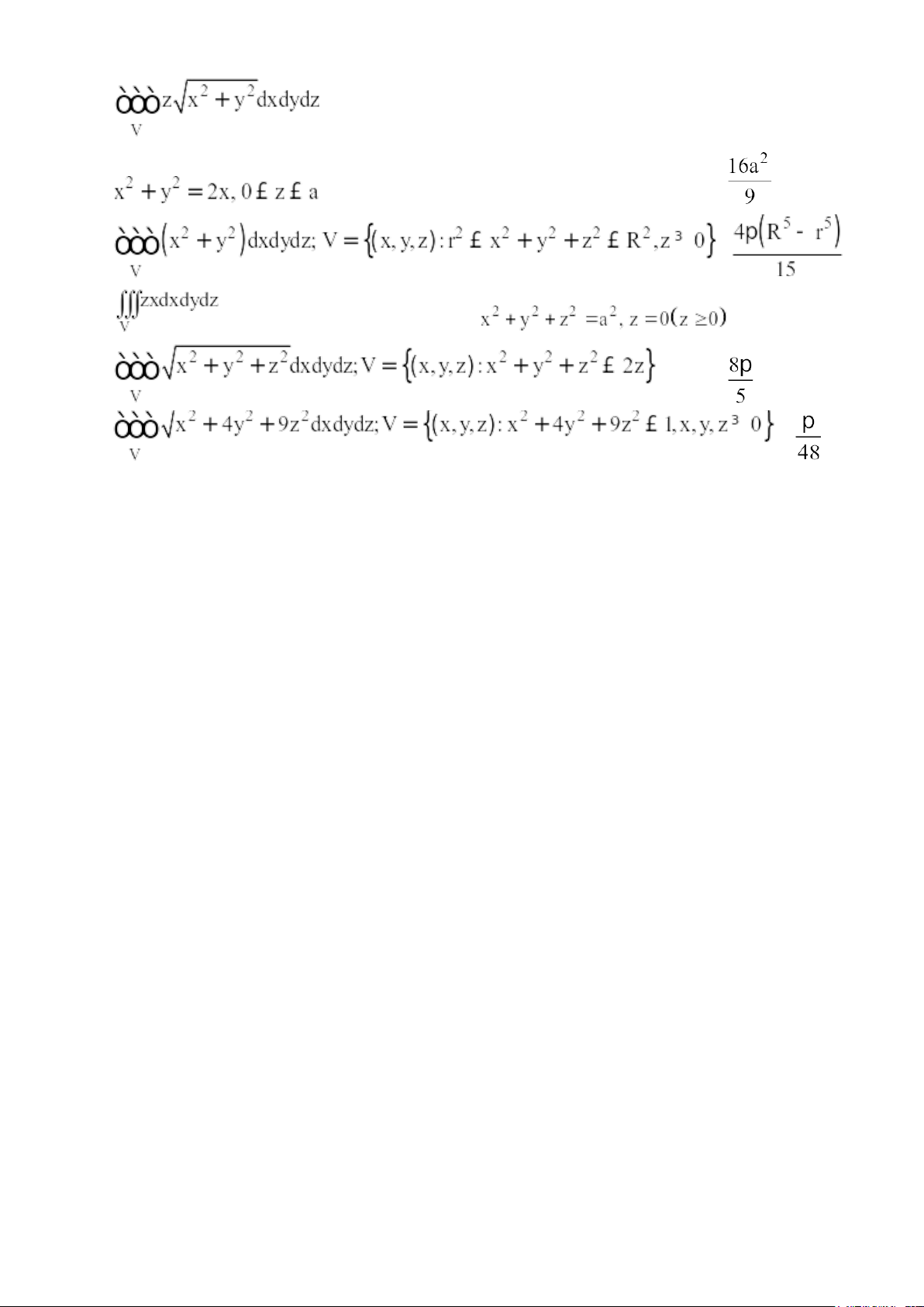 trong đó V là vật thể giới hạn bới 0 j) k) ; 11