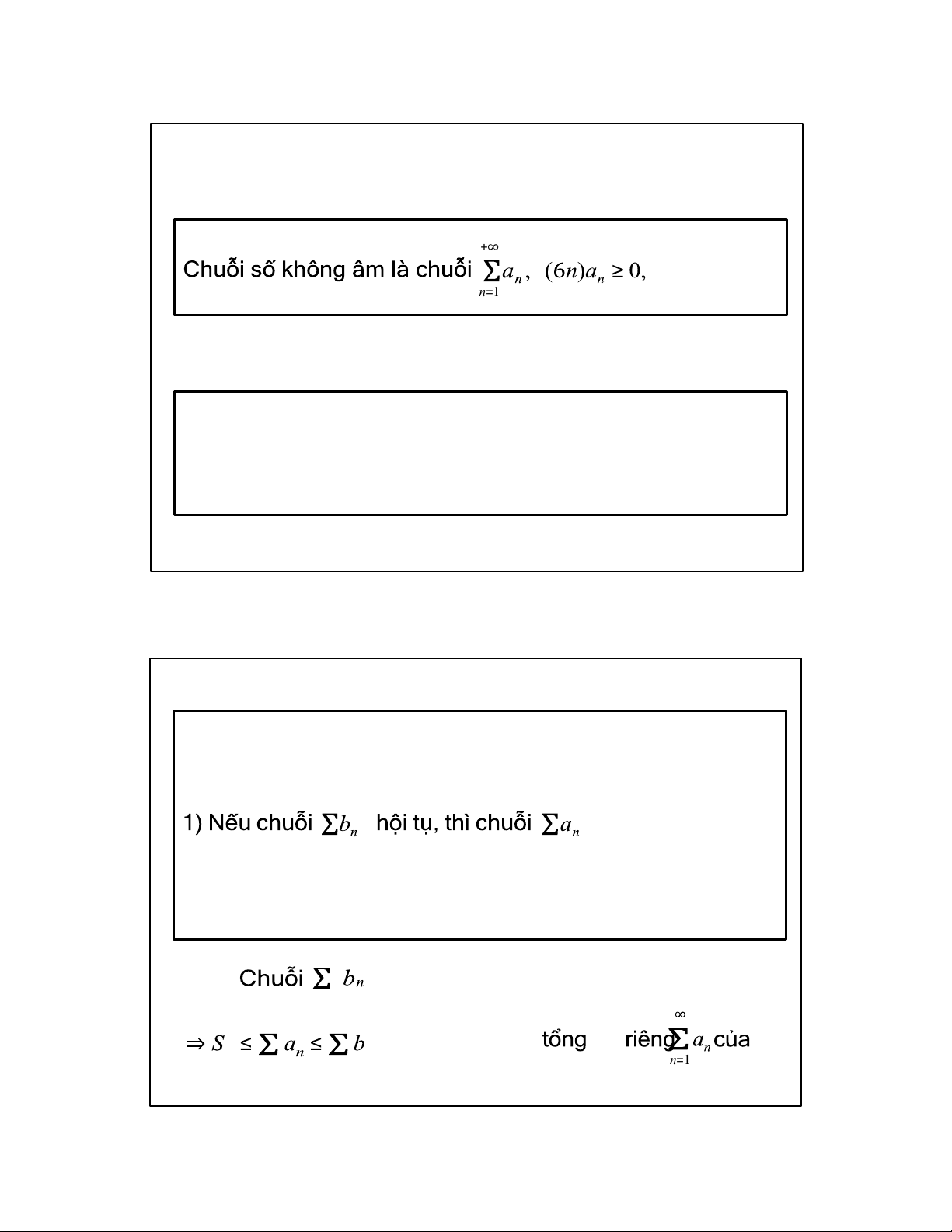 Vậy chuỗi không âm hội tụ khi và chỉ khi bị chặn trên. 3 Tiêu chuẩn so sánh 1 +∞ +∞
