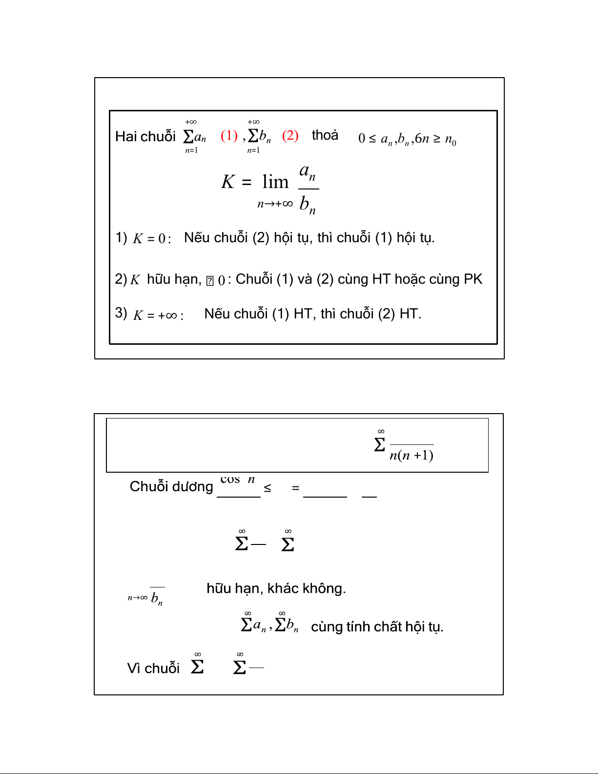 1) K = 0 : Nếu chuỗi (2) hội tụ, thì chuỗi (1) hội tụ.