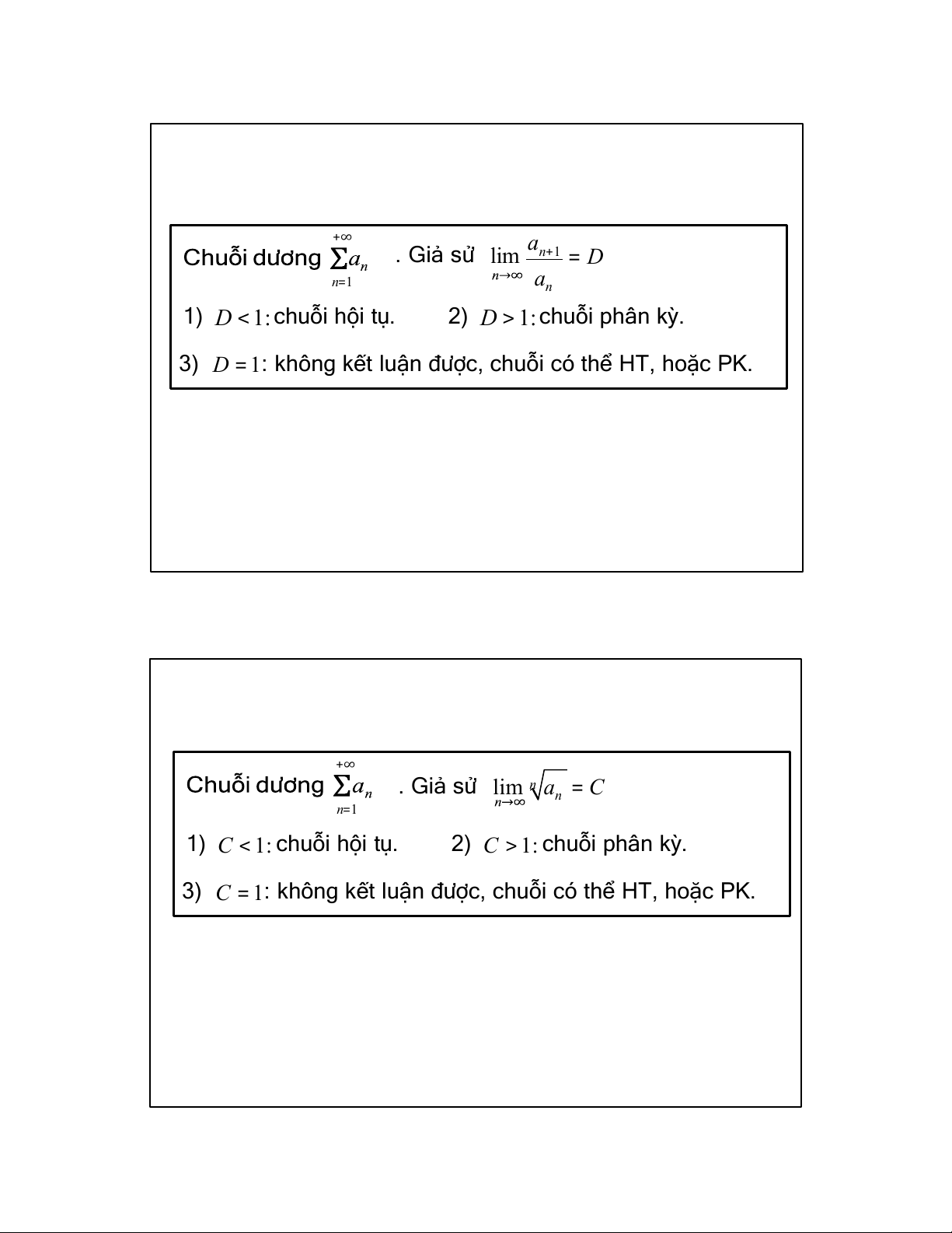 1) D < 1: chuỗi hội tụ.