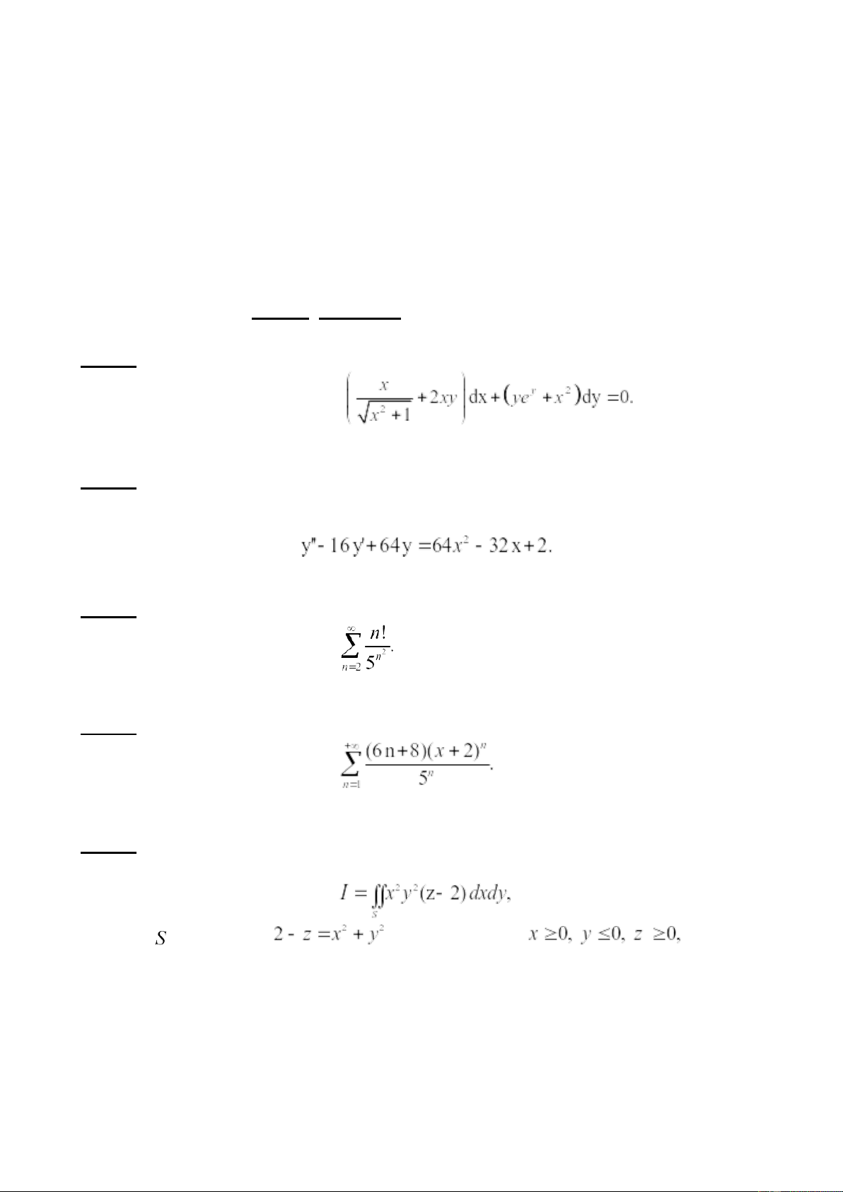 Tên học phần: Giải tích 2 (Đại trà) Mã học phần: 3190121 Hình thức thi: Tự luận Đề số: 02