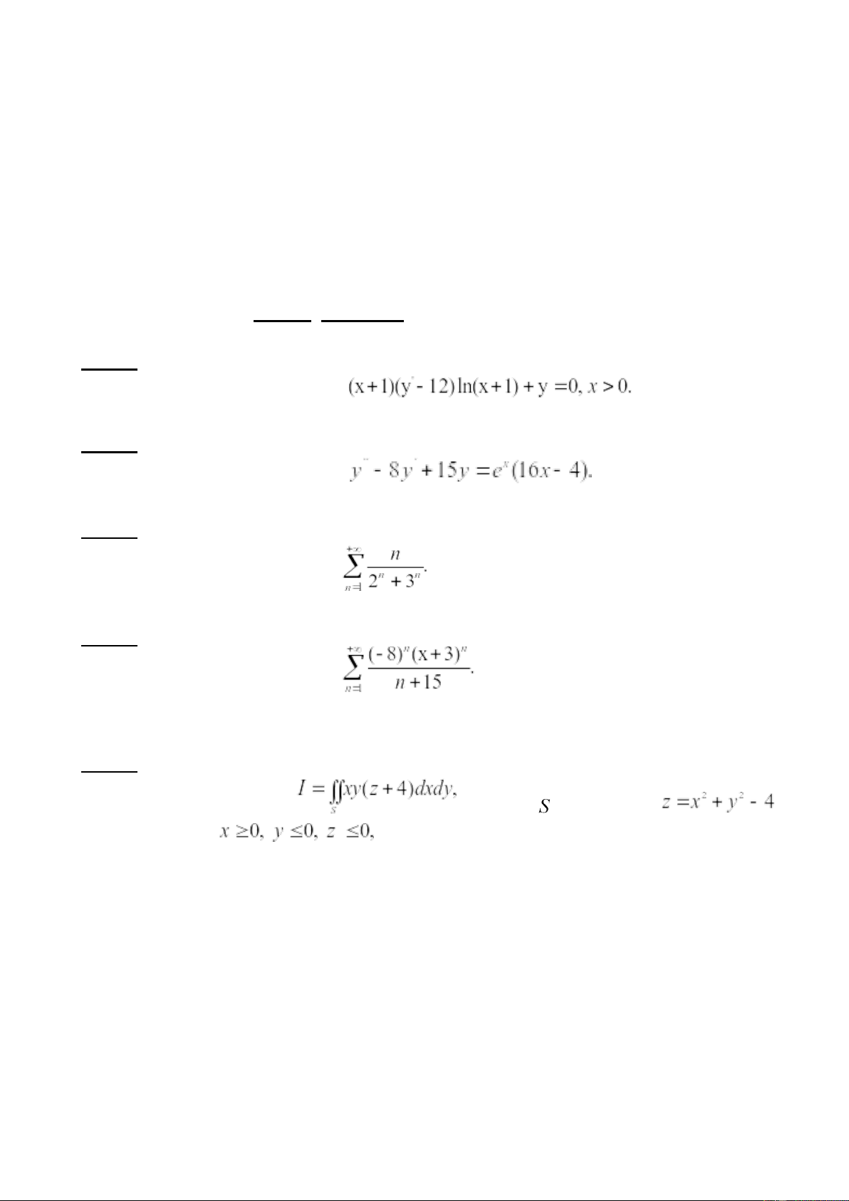 Tên học phần: Giải tích 2 (Đại trà) Mã học phần: 3190121 Hình thức thi: Tự luận Đề số: 04