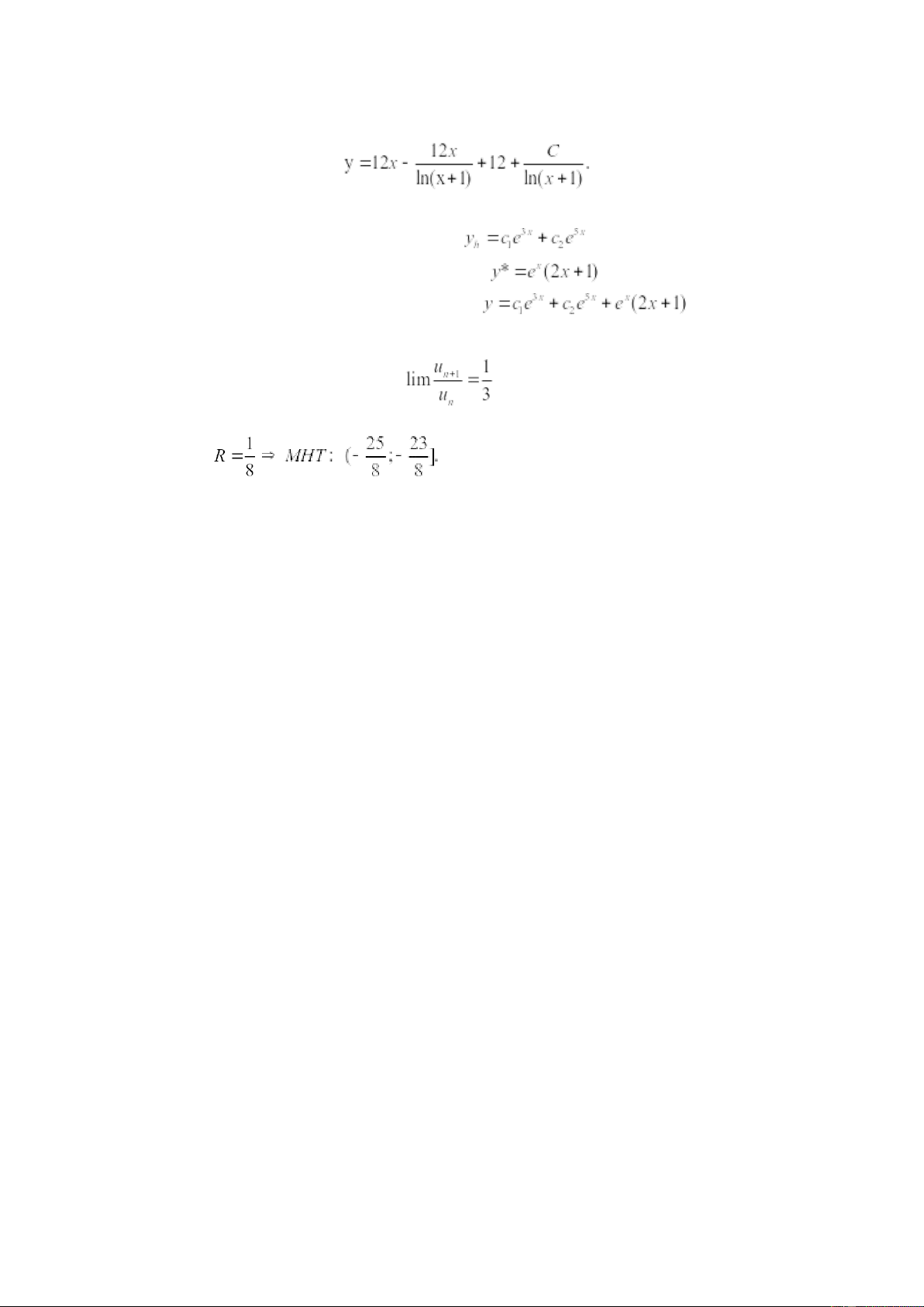 ta suy ra chuỗi đã cho hội tụ. Câu 4: BKHT Câu 5: 16/3.